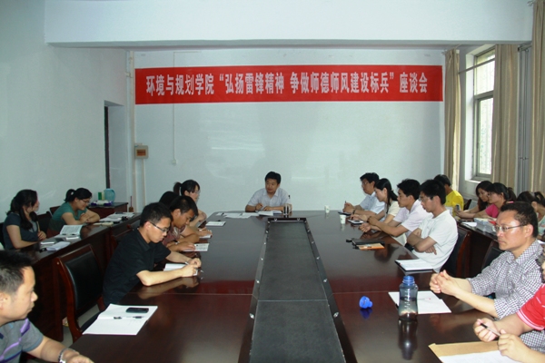 为更好地弘扬和践行雷锋精神,进一步提高教师职业道德水平,建设高素质教师队伍,5月11日,环境与规划学院在文化路校区3号教学楼会议室召开以“弘扬雷锋精神 争做师德师风建设标兵”为主题的座谈会。环境与规划学院领导班子全体成员出席座谈会,全体教职工和部分学生代表参加了座谈会,会议由党总支书记王东平主持。