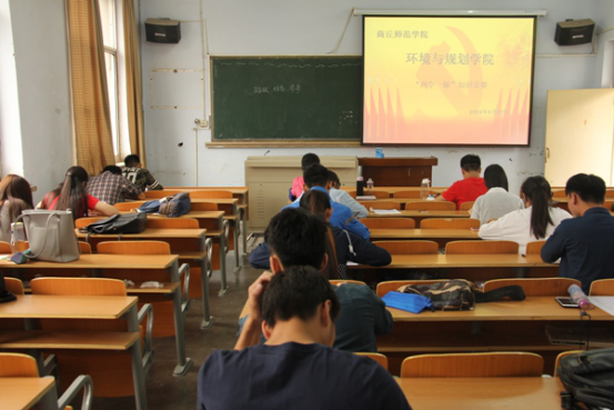 5月27日下午,由环境与规划学院学生第三党支部书记魏理主讲的“两学一做”专题讲座在文化路校区6号教学楼201举行,该院全体学生党员聆听了此次讲座。魏老师就“如何端正入党动机”“如何做合格党员”两个方面进行了详细的阐述,并强调,作为一名党员要从思想上向党靠齐,在行为上与党一致。会后,大家均表示受益匪浅。