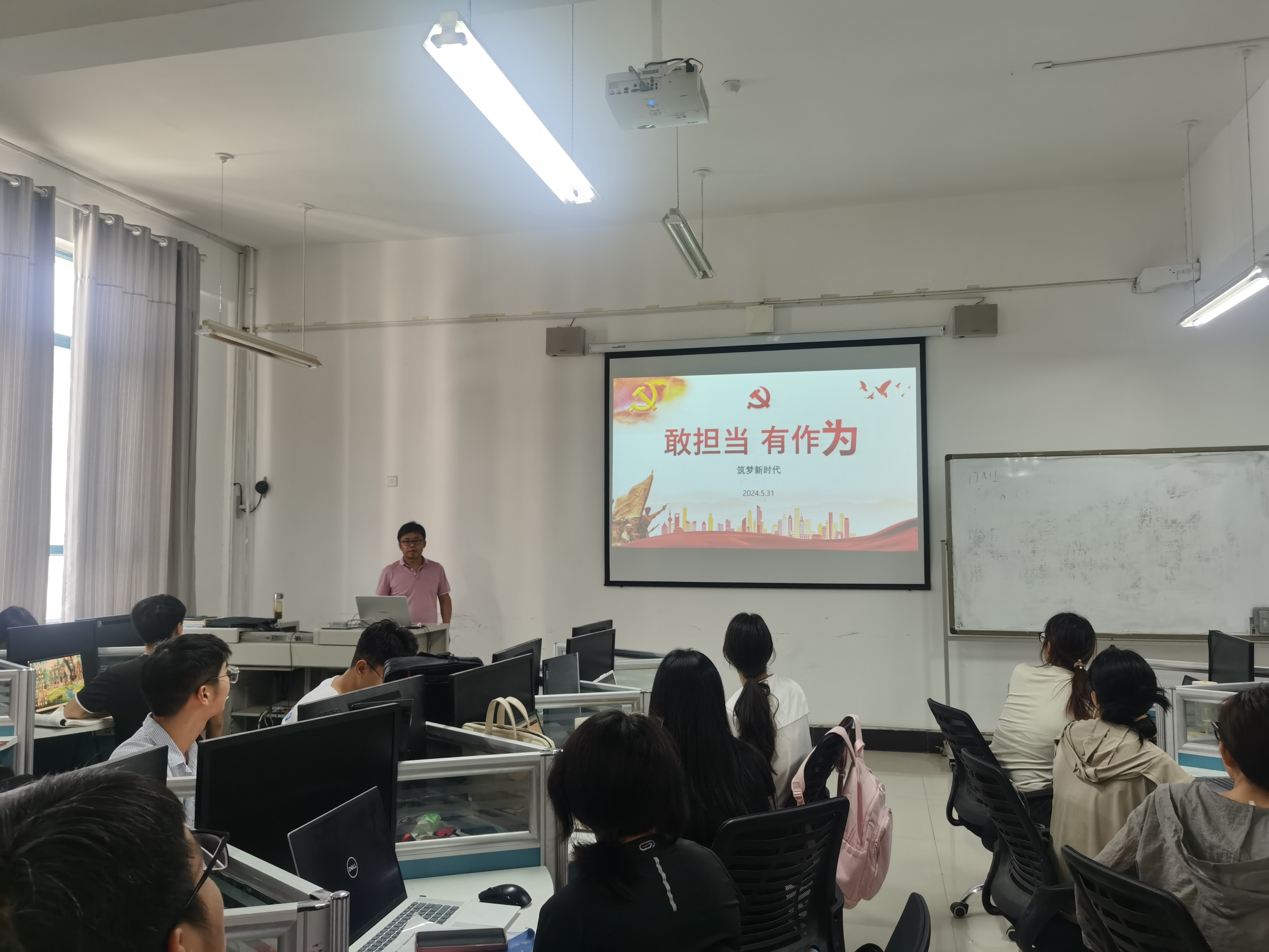 贺振以“敢担当,有作为”为题,以“青年强,则国家强”为切入点,讲述了何为“担当作为”、为何强调要担当作为、如何担当作为等内容。贺振表示,当代青年大学生要树立远大理想,立志成才,将个人理想与祖国发展紧密结合起来,做新时代的“先行者”、“拓荒者”,努力成为堪当时代大任、勇担历史使命的新时代有为青年。