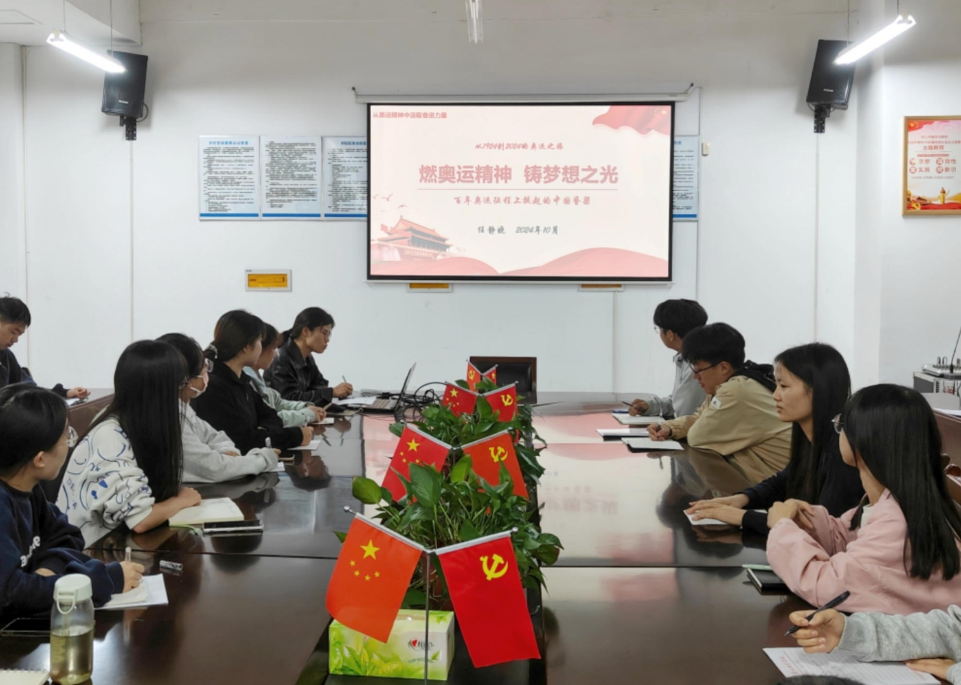 10月24日,学生第三党支部书记任静晓以《燃奥运精神,铸梦想之光》为题讲授了党课。