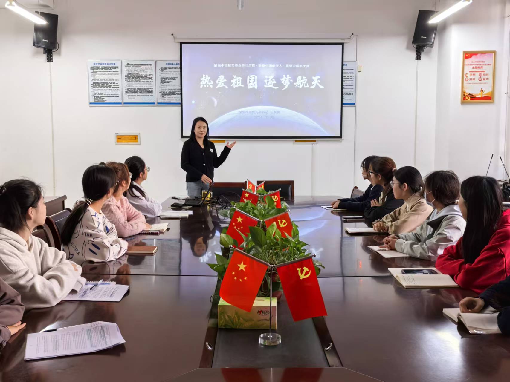 10月25日,学生第四党支部书记王昊昊以《热爱祖国 逐梦航天》为题讲授了党课。
