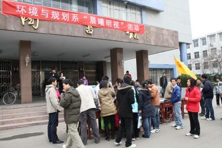 活动负责人李琳书记说:我们以这样一种特殊的方式迎接国际志愿人员日,非常有意义,对志愿者是一种锻炼,最重要的是引起了广大同学对视力健康的关注,达到了预期目的,起到了很好的作用。(环境与规划系通讯员 杜帅鹏)