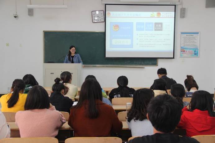 10月17日,beat365中文官方网站在平原路校区教学组团楼127教室开展以 “学习团十八大精神之不忘初心跟党走,牢记青春使命”为主题的宣讲会,宣讲会由团总支书记路璐主讲,学院各团支部参加此会议。