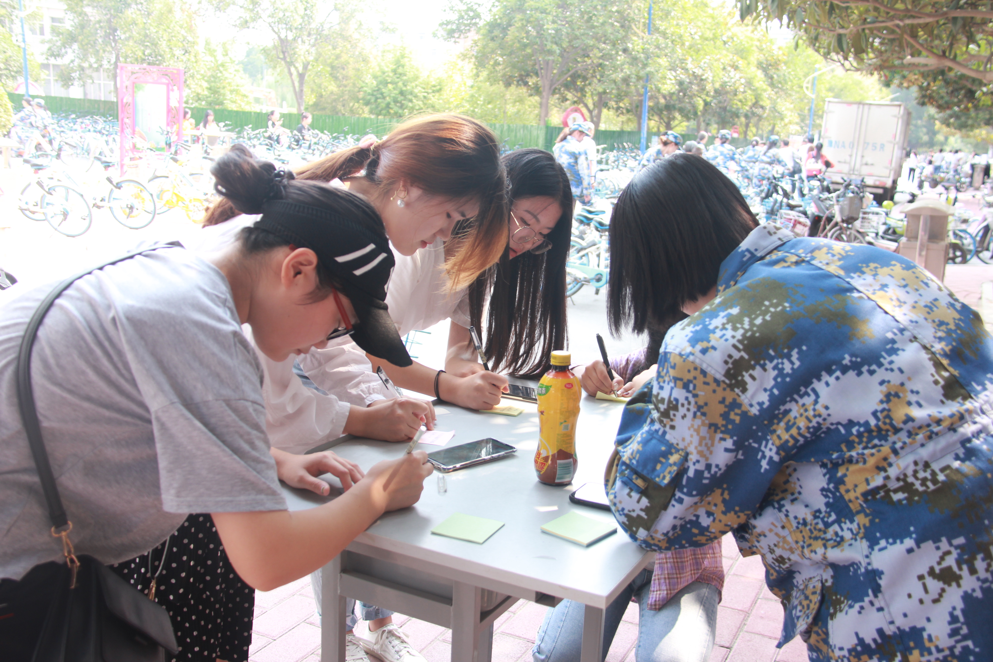 为庆祝新中国成立70周年,讴歌祖国所取得的辉煌成就,9月27日,beat365中文官方网站于梁园校区食息餐厅西门处举办了“我为祖国送祝福”祝福语征集活动。