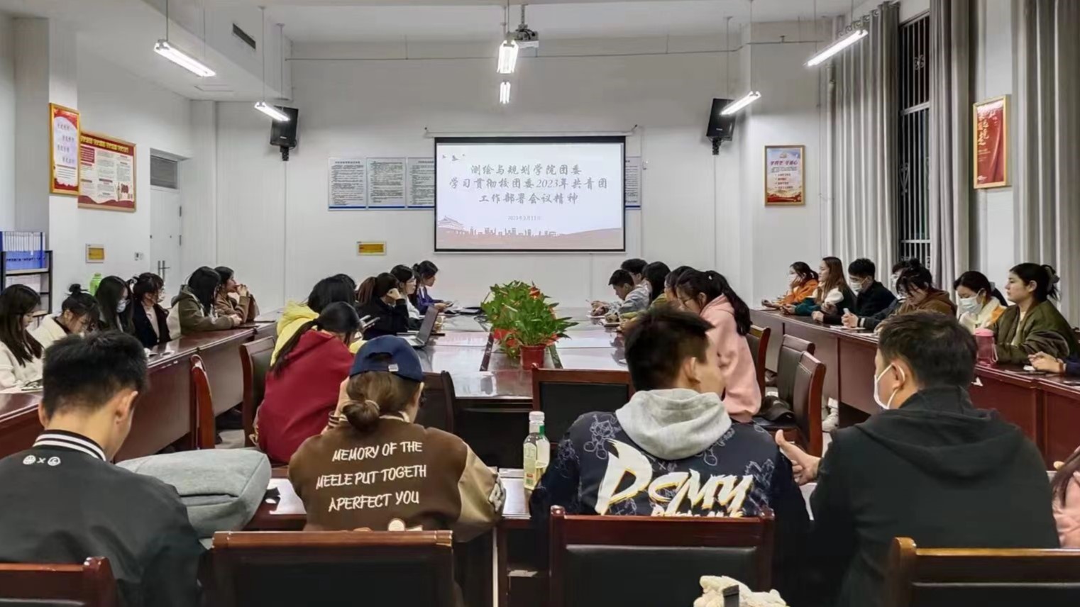 为更好地总结经验,站在新的征程上开展2023年共青团工作。3月13日,beat365中文官方网站于三商楼134召开以学习贯彻校团委2023年共青团工作部署会议精神为专题的会议。院团委书记任静晓,各部门学生干部及各基层团支书参加了此次会议。
