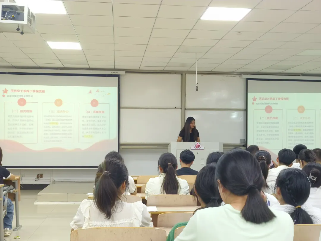 活动中,吕灿灿向24级新生详细介绍了共青团的性质、团的宗旨、基本任务、组织形式、工作内容、团的组织原则,通过生动的事例,让同学们对共青团在不同历史时期所发挥的重要作用有了进一步的认识。随后,详细讲解了新生团员档案的归档以及团组织关系转接、团员发展等有关事宜,鼓励24级新生积极向团组织靠拢,努力成为一名合格的社会主义建设者和接班人。