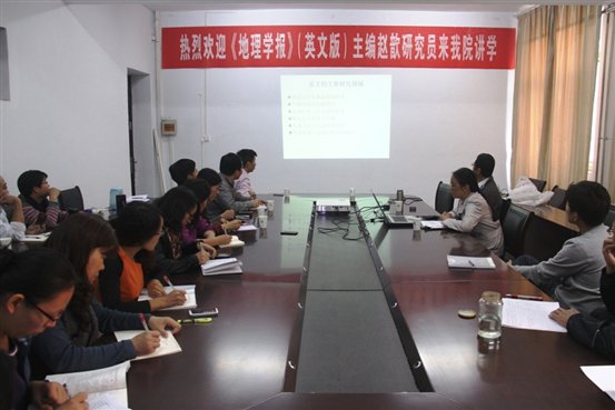 10月14日上午,中国科学院地理与资源科学研究所副编审、《地理学报》(英文版)常务副主编赵歆老师应邀来到beat365官网,在文化路校区3号教学楼环境与规划学院会议室为beat365官网师生作了一场《< 地理学报>研究领域及对稿件要求》的专题学术报告。报告会由院长史本林教授主持,环境与规划学院全体教师及部分高年级学生参加了报告会。