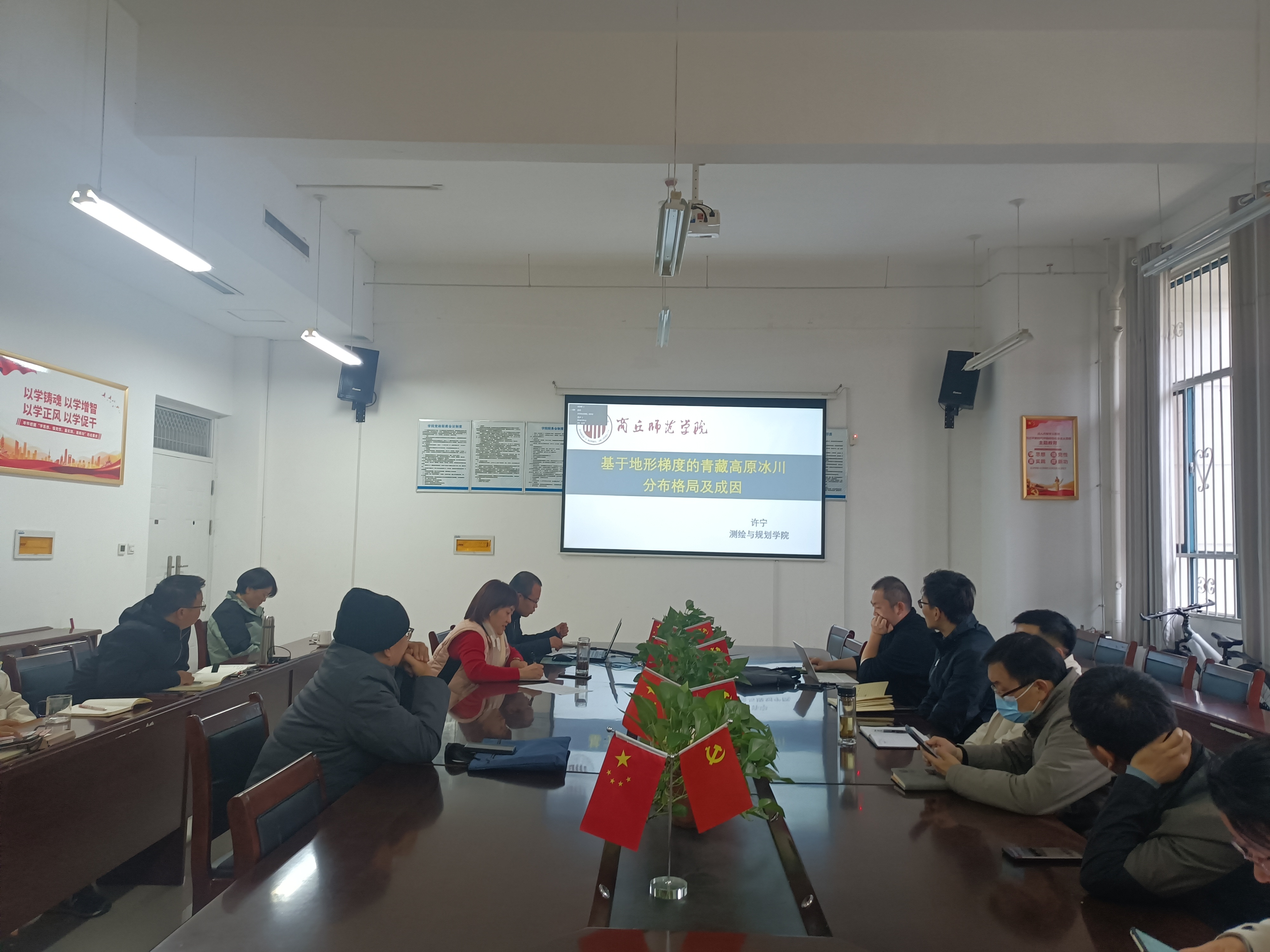 李佳秀博士汇报了两个省级项目的最新进展情况,并提出了下一步研究的计划。张顺博士介绍了谷歌智能手机分米级定位挑战赛的准备和开展情况。许宁博士利用第6版Randolph冰川编目数据和NASADEM为数据源,运用均值变点法、分布指数和地理探测器等方法,对青藏高原冰川在地形起伏度、海拔、坡度和坡向等地形梯度上的分布格局及其与地形因子之间的响应关系进行分析。