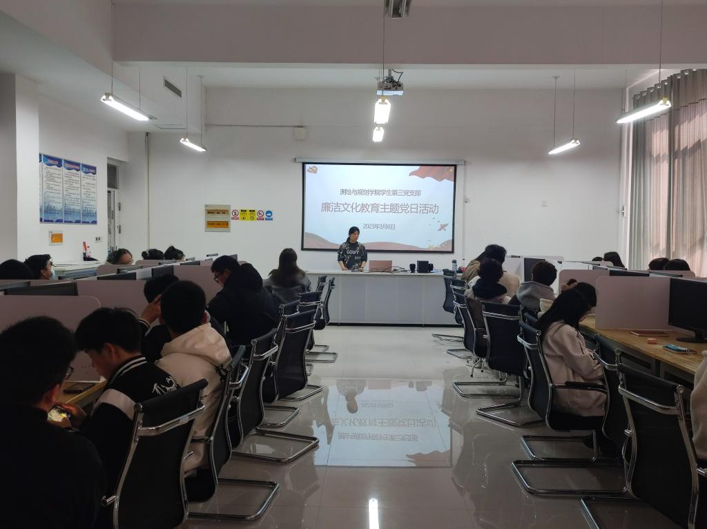 为深入学习宣传贯彻党的二十大精神,引导学生进一步夯实清正廉洁思想根基、厚植廉洁奉公文化基础。3月6日,beat365中文官方网站在三商楼221教室开展廉洁文化教育主题党日活动。学生第三党支部书记任静晓,全体学生党员和入党积极分子参加了此次活动。