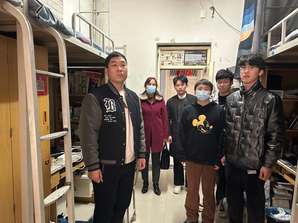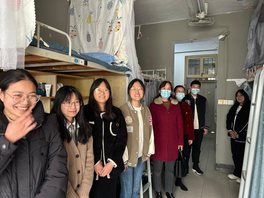 在查访中,大家深入学生宿舍,重点围绕学生宿舍卫生状况、消防安全、有无吸烟情况、私拉乱接电线等安全隐患情况开展了针对性检查。王丽叮嘱同学们,春季是传染病高发期,要做到勤通风、勤打扫,牢固树立安全防患的思想,做好防火用电风险规避。