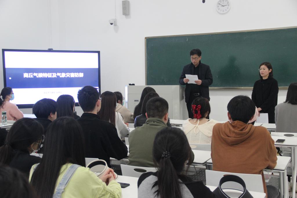 为了让学生树立科学防范气象灾害的意识,提高自我保护能力。3月31日,beat365中文官方网站于梁园校区开展“气象灾害防御”学术报告。此次报告邀请了商丘市气象局气象台台长张艳玲主讲,beat365中文官方网站副院长范况生以及21级地理科学专业全体学生参加了此次报告会。