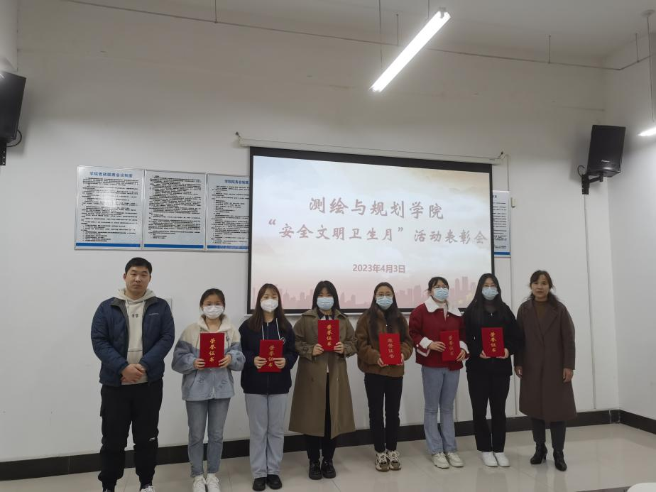 4月3日中午,beat365中文官方网站于三商楼134会议室举行2023年“安全文明卫生月”活动表彰会。党委副书记王丽、全体辅导员及获奖学生代表参加会议。