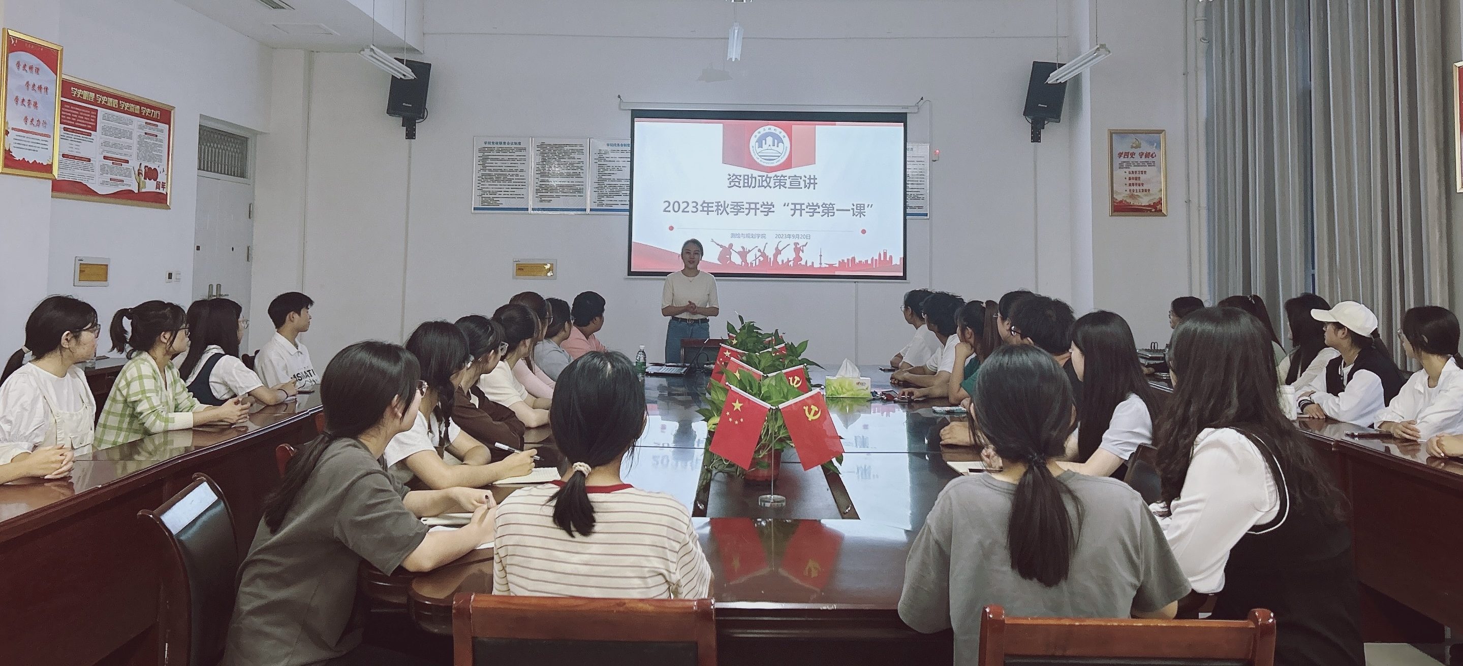 为进一步宣传国家资助政策,推进beat365官网资助育人工作,beat365中文官方网站于2023年9月20日,在三商楼134会议室开展资助第一课暨“资助育人 筑梦未来的主题宣讲活动。本次活动由资助专员王昊昊老师主持,2023级同学参与学习。