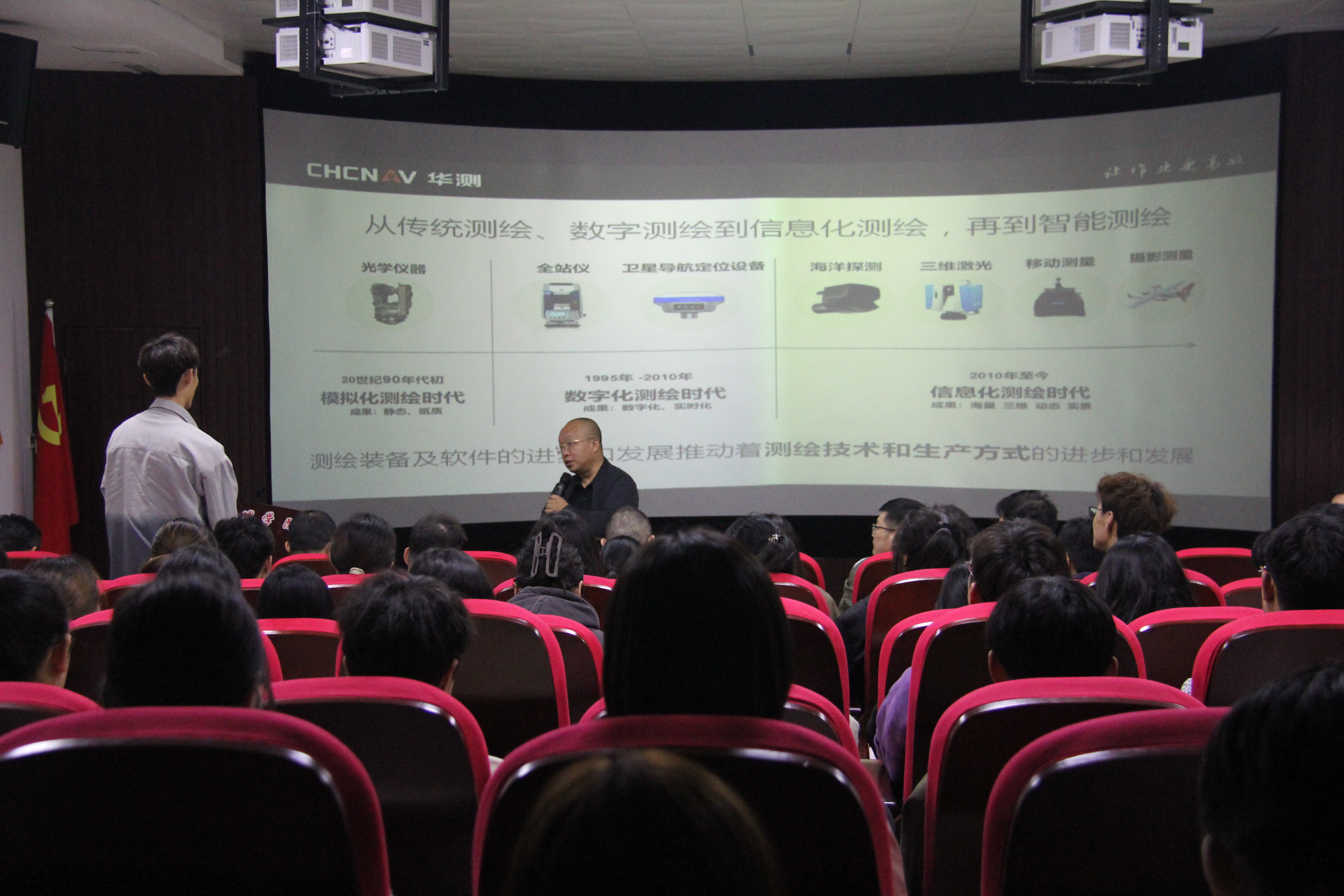 10月20日,上海华测导航技术股份有限公司副总裁胡炜一行应beat365官网邀请到校为beat365中文官方网站相关专业师生作《地理信息测绘行业发展现状以及就业情况》学术报告。讲座由学院院长贺振主持,相关专业老师、辅导员及学生参加。