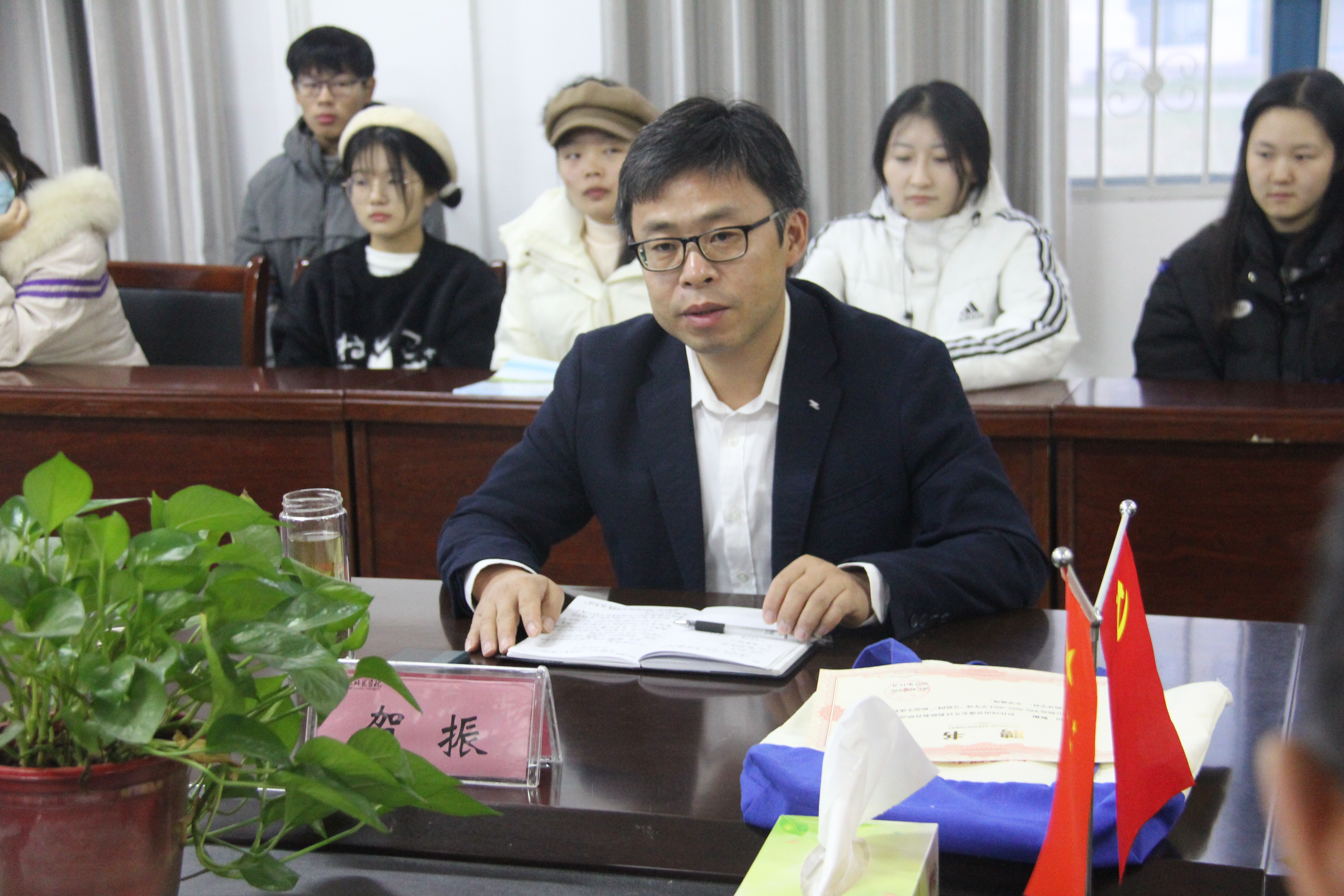 首先,贺振介绍了地理科学专业的整体发展情况,并宣读2023-2024学年中学地理“互联网+”师范生技能培训工作计划,希望同学们抓住机会,多思勤问、虚心请教、深度思考,结合自己特长优点,多展现,多实践,保持积极的态度,提升自己教育教学技能。