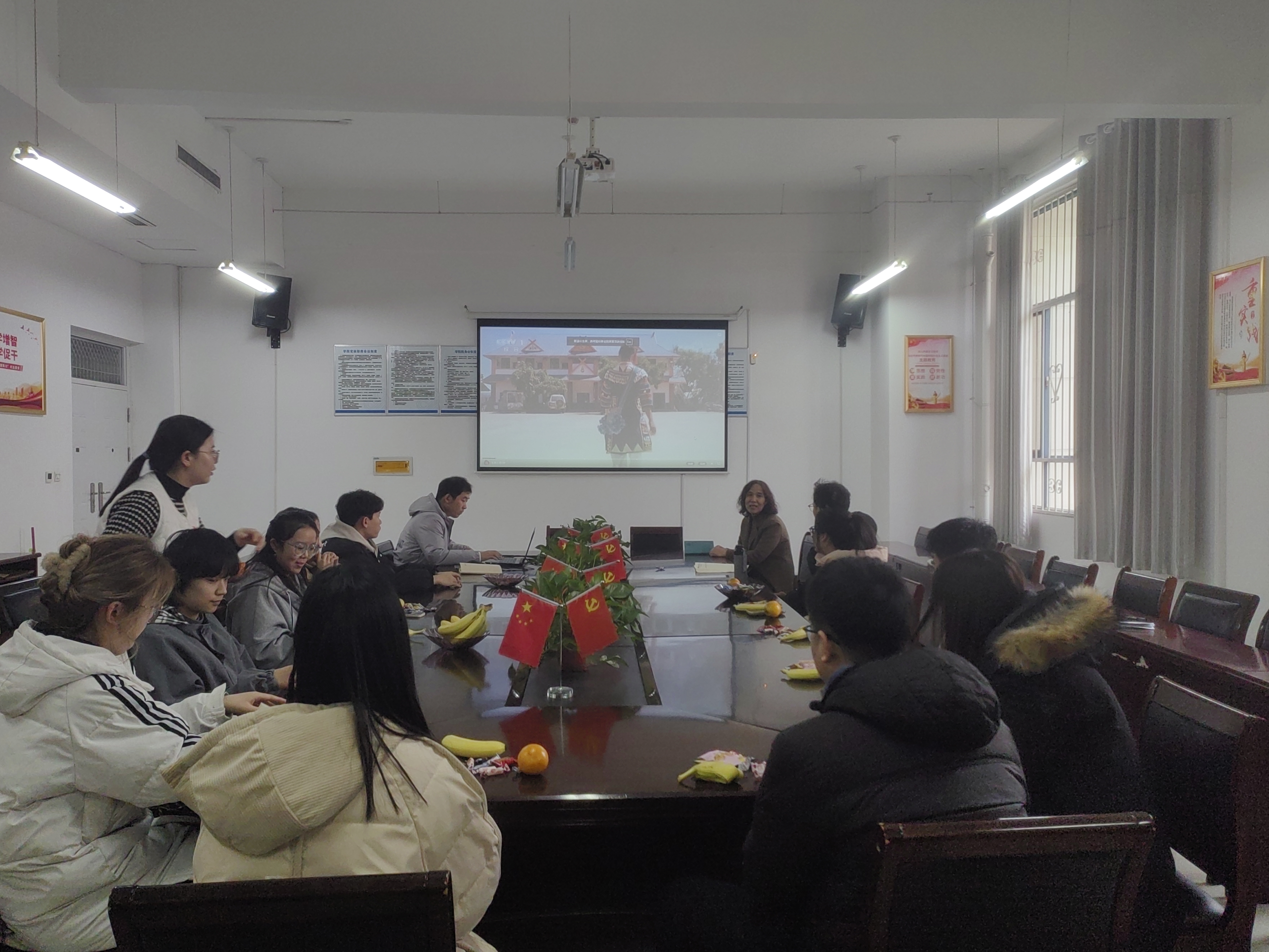 活动中,大家共同观看了《中华民族之大山里的风物》视频。随后,王丽亲切询问了少数民族学生在校期间生活情况,大家积极回应并深入交流了近期思想、学习等动态。活动现场气氛热烈,大家互相分享家乡风俗、生活趣事,起到了增进感情、团结进步的目的。