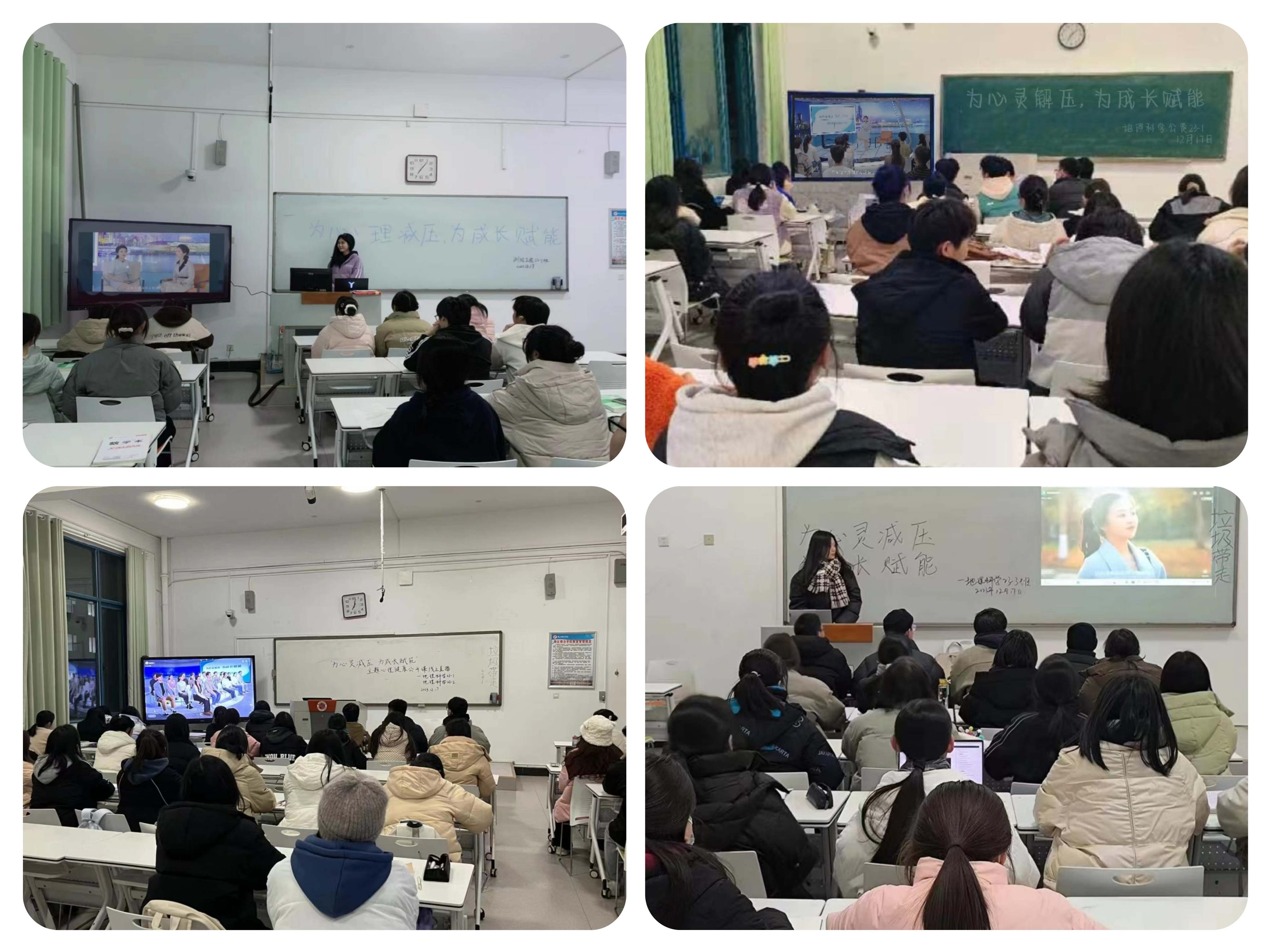 12月17日,beat365中文官方网站组织大一大二学生于晚自习教室集中观看了河南省教育厅举办的“为心灵解压 为成长赋能”主题心理健康公开课。