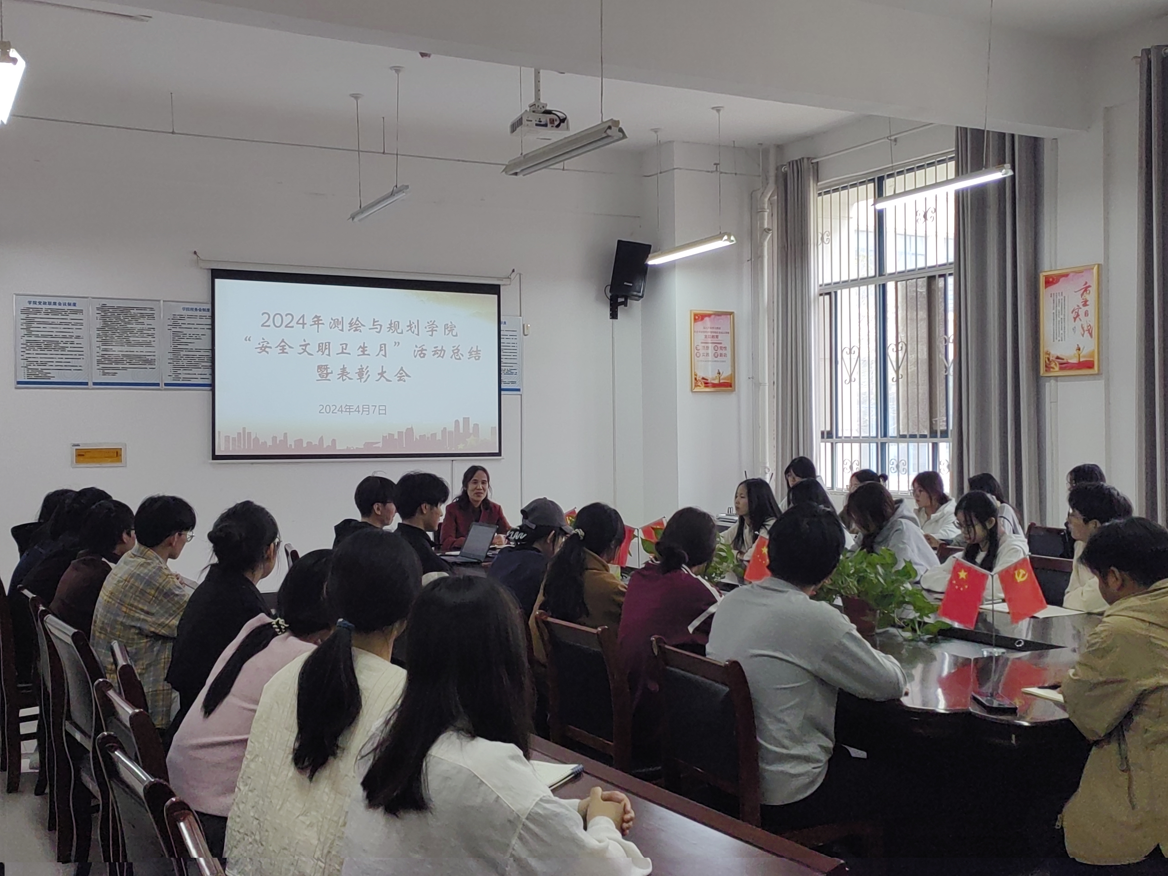4月7日,beat365中文官方网站举办2024年“安全文明卫生月”活动总结暨表彰大会,学院党委副书记王丽、学工办副主任苏婉月、大一各班班长、团支书、文明学生,学生会相关部门及学院青年志愿者协会参加会议。