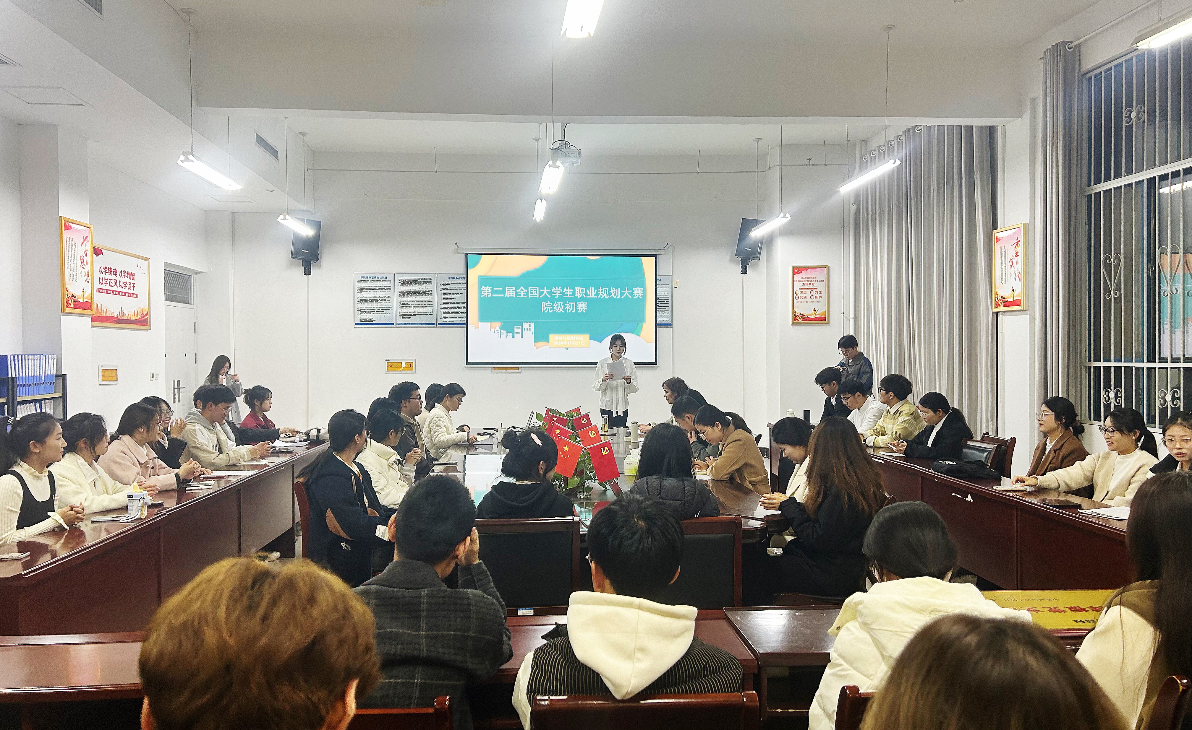 为积极响应全国大学生职业规划大赛的号召,引导学生明确职业目标,提升职业规划能力,11月21日,beat365中文官方网站于三商楼134会议室举办第二届全国大学生职业规划大赛院级初赛,出席大赛的评委有院党委副书记王丽、院团委书记任静晓以及全体辅导员,本次大赛由学习部丁子轩主持。