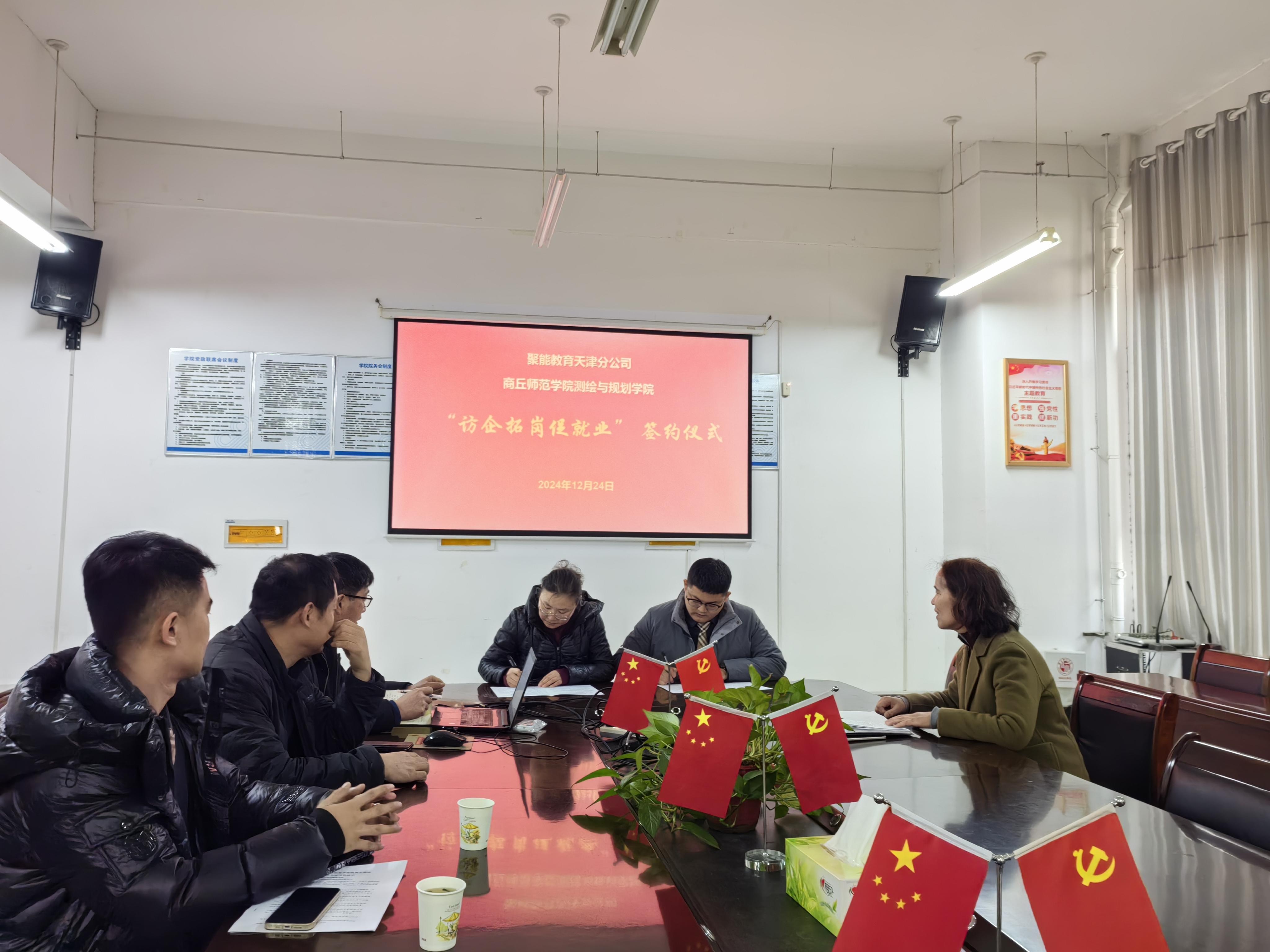 为深入贯彻落实党中央、国务院关于“访企拓岗促就业”专项行动工作部署,拓宽毕业生就业渠道,12月24日上午,beat365中文官方网站邀请聚能教育(天津分公司)负责人李德国一行三人到beat365官网开展“访企拓岗促就业”专项行动暨2025届毕业生招聘宣讲会。学院领导班子成员、毕业班辅导员、部分2025届毕业生参加活动。