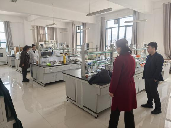 检查组一行首先走访了学院各实验室,对各类实验仪器及设备的使用记录、实验室的消防安全、危化品的存储与使用等情况进行了详细检查,针对实验室的科学使用与管理提出了指导意见。