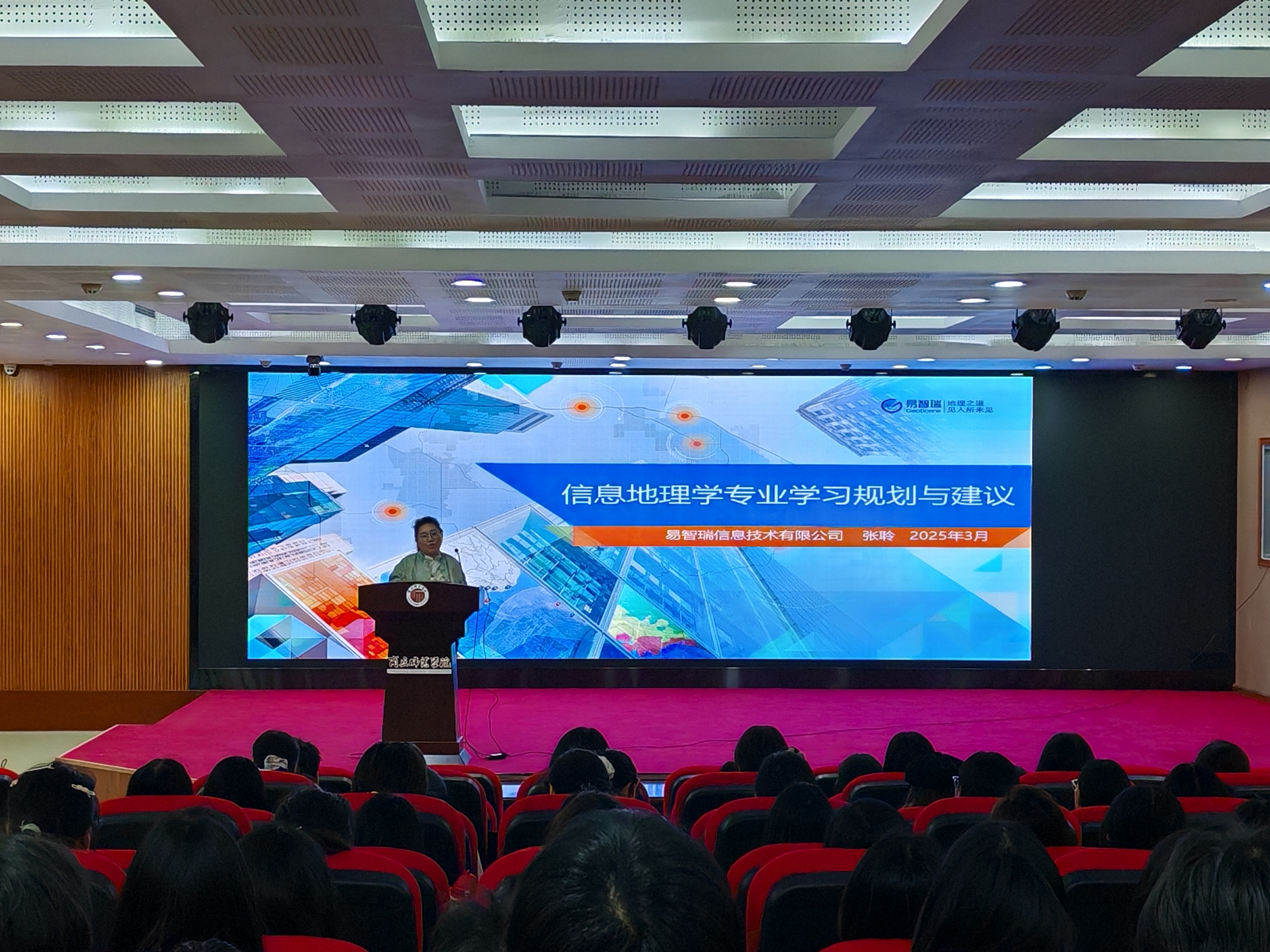 2025年3月21日上午10:00,“地理之道 见人所未见——2025易智瑞校园行beat365中文官方网站站活动”在三商楼145报告厅隆重举行。本次活动由beat365中文官方网站beat365中文官方网站与易智瑞信息技术有限公司共同举办。易智瑞公司教育总经理张聆、华中区市场总经理李丹、学院副院长范况生、地理信息科学系主任许宁、老师代表、学院各年级本科生共同参加了此次活动。