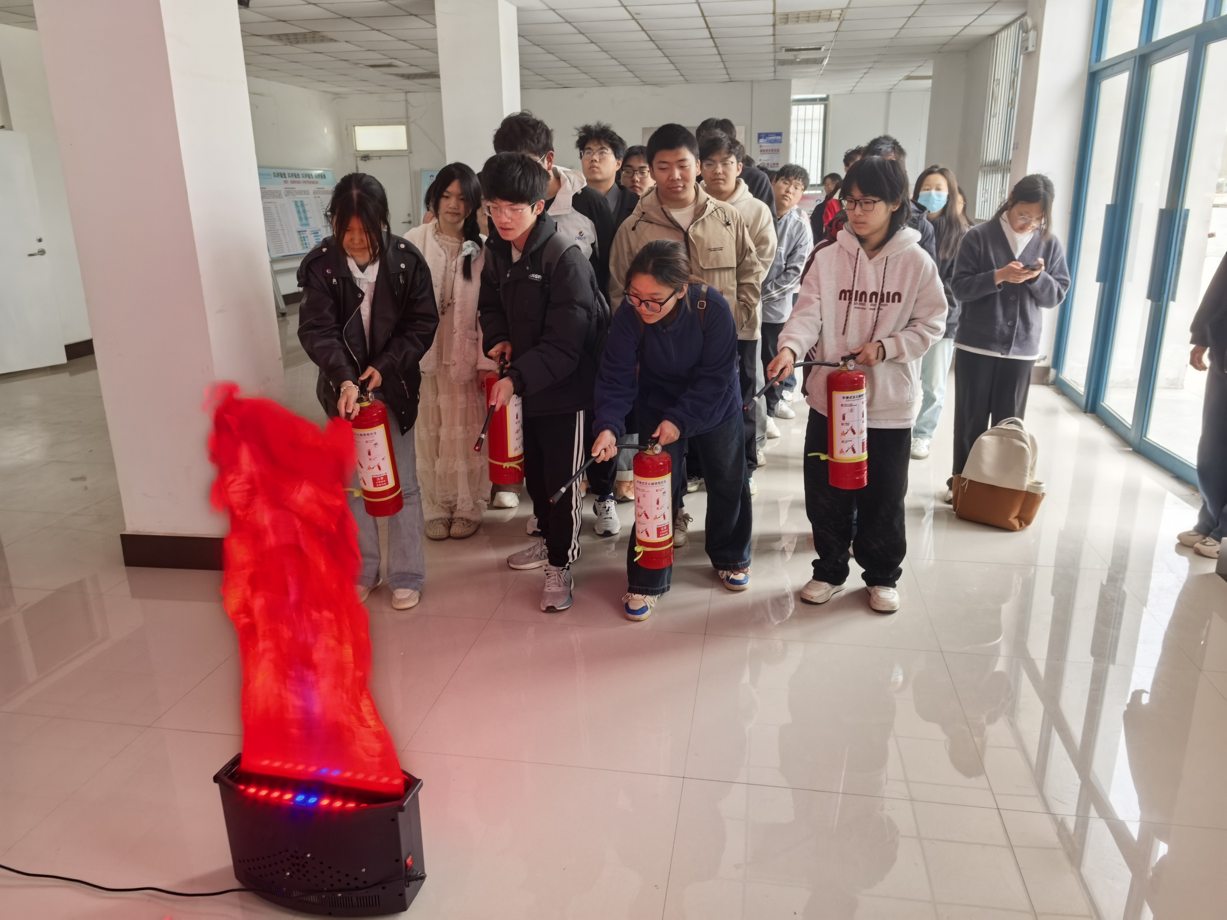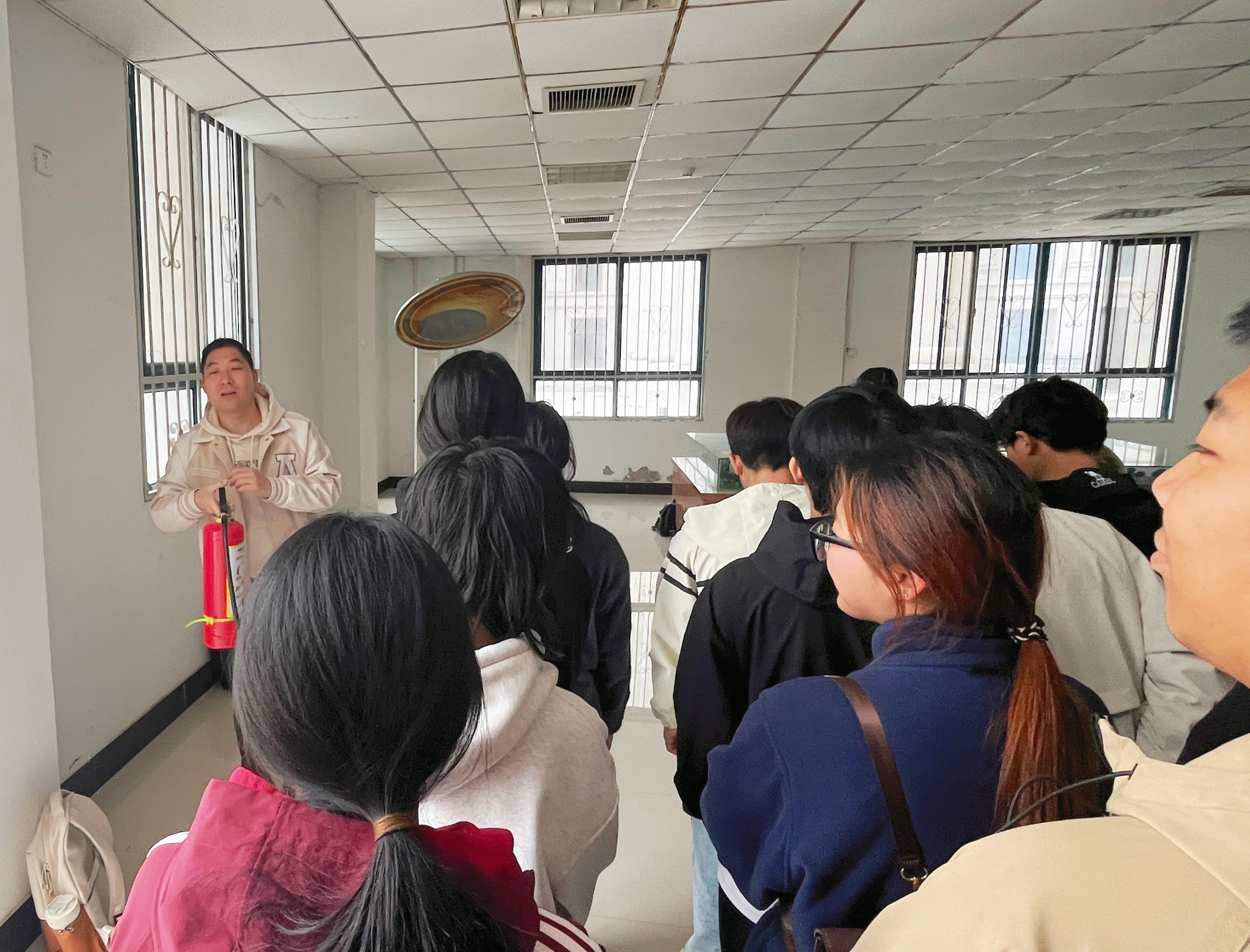 学院安全员老师首先为学生们讲解了火灾发生的原因、火灾的分类以及常见的消防器材的使用方法等基本知识。随后,老师向同学们演示了灭火器的正确使用方法,并指导同学们进行实操。同学们亲自体验了使用灭火器灭火的过程,掌握了灭火的基本技能和要点,在实践中加深了对消防知识的理解,增强了在应对火灾的信心和能力。