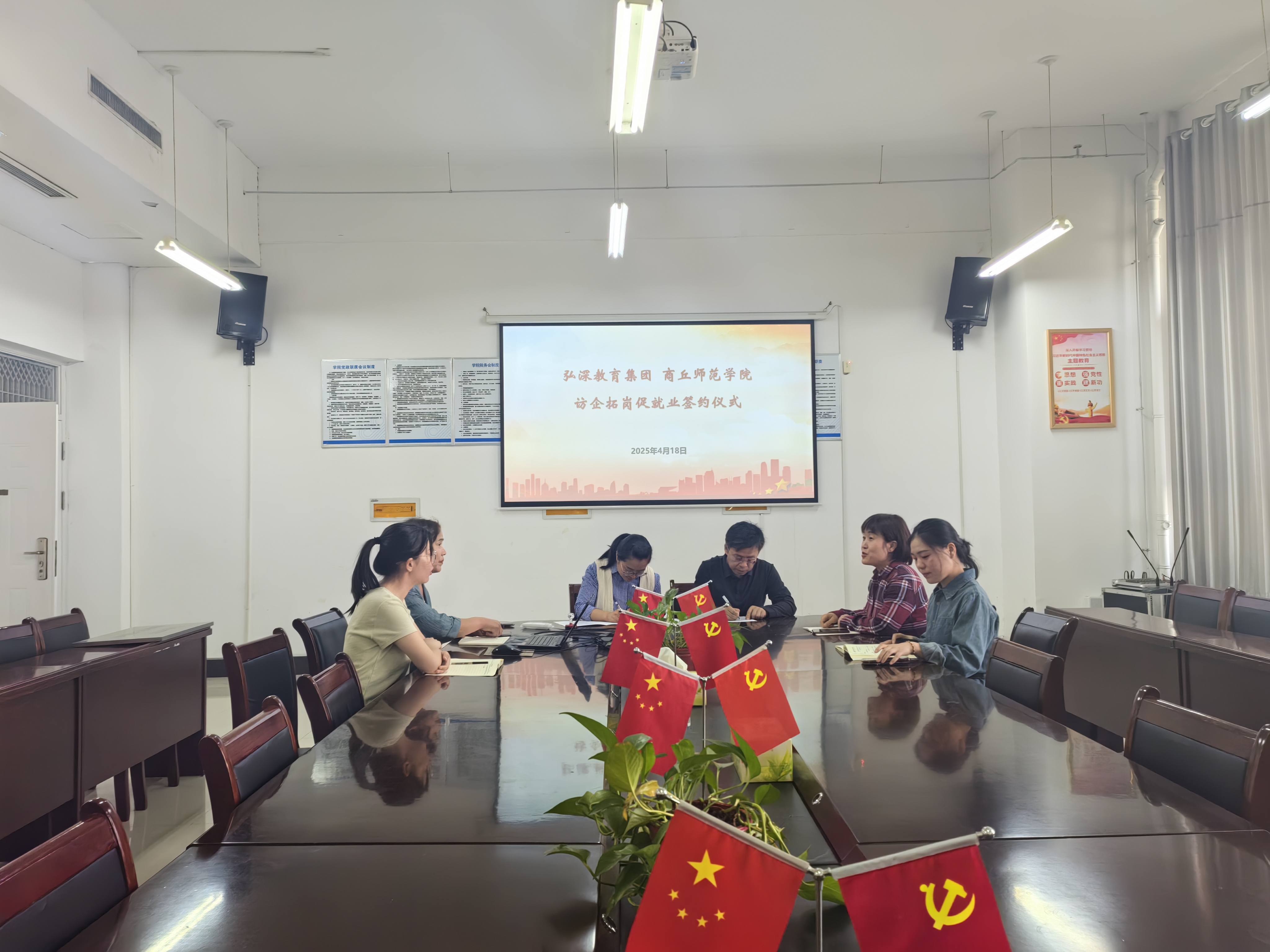 4月18日上午,beat365中文官方网站开展“访企拓岗促就业”专项行动,邀请商丘弘深教育集团来到beat365官网进行座谈。学院领导班子和毕业班辅导员参加了座谈会。