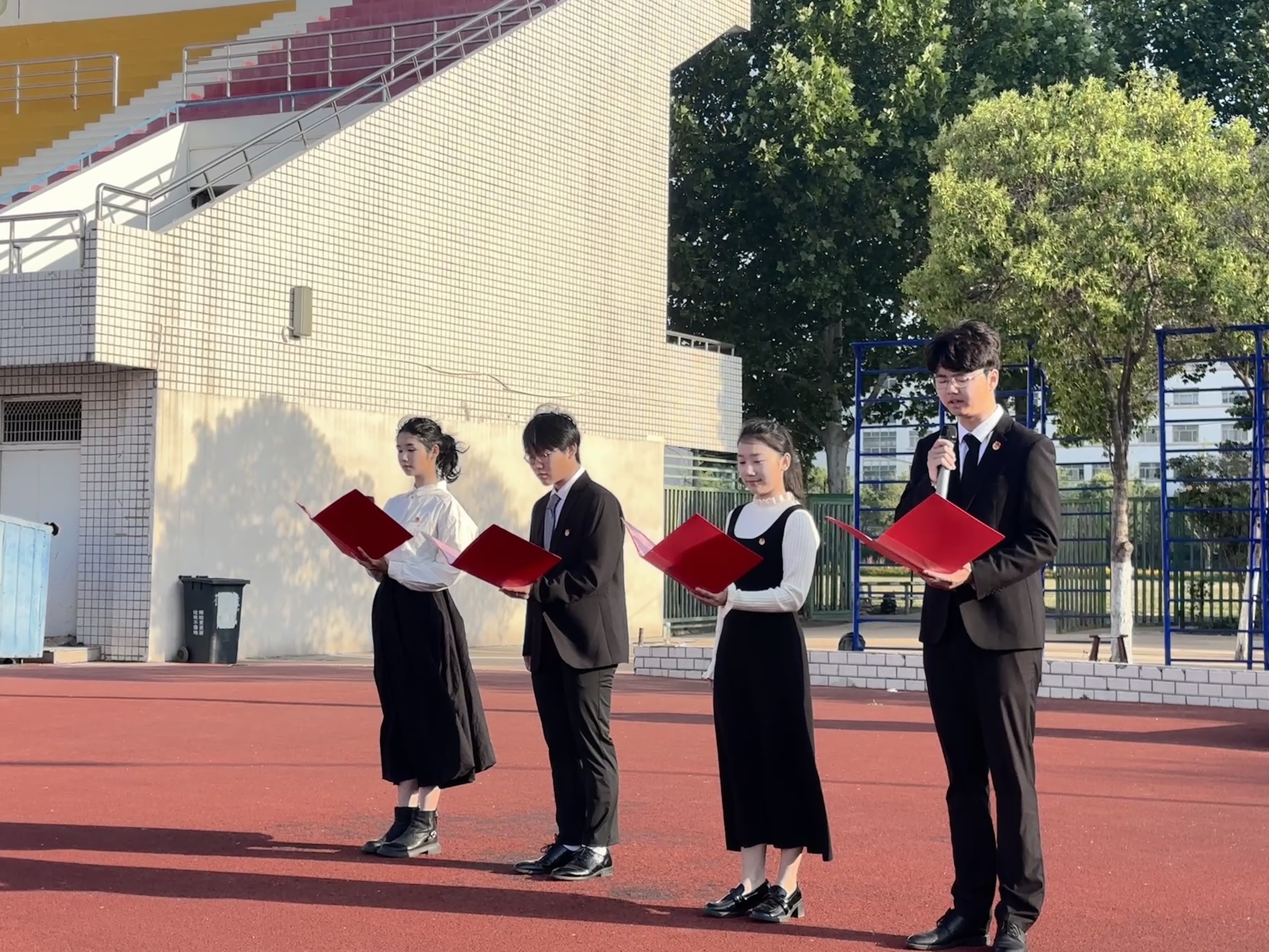 5月12日,beat365中文官方网站于梁园校区体育场举行“经纬巧绘山河志,师心深铸国土魂”主题升旗仪式暨主题党日活动。学生处副处长卢剑平、大学生心理健康教育中心教师任毛芳、学院全体领导班子、全体辅导员、毕业生党员、2024级全体学生和2023级地理科学(公费)班全体学生参加了此次活动,活动由2023级学生路景雅主持。