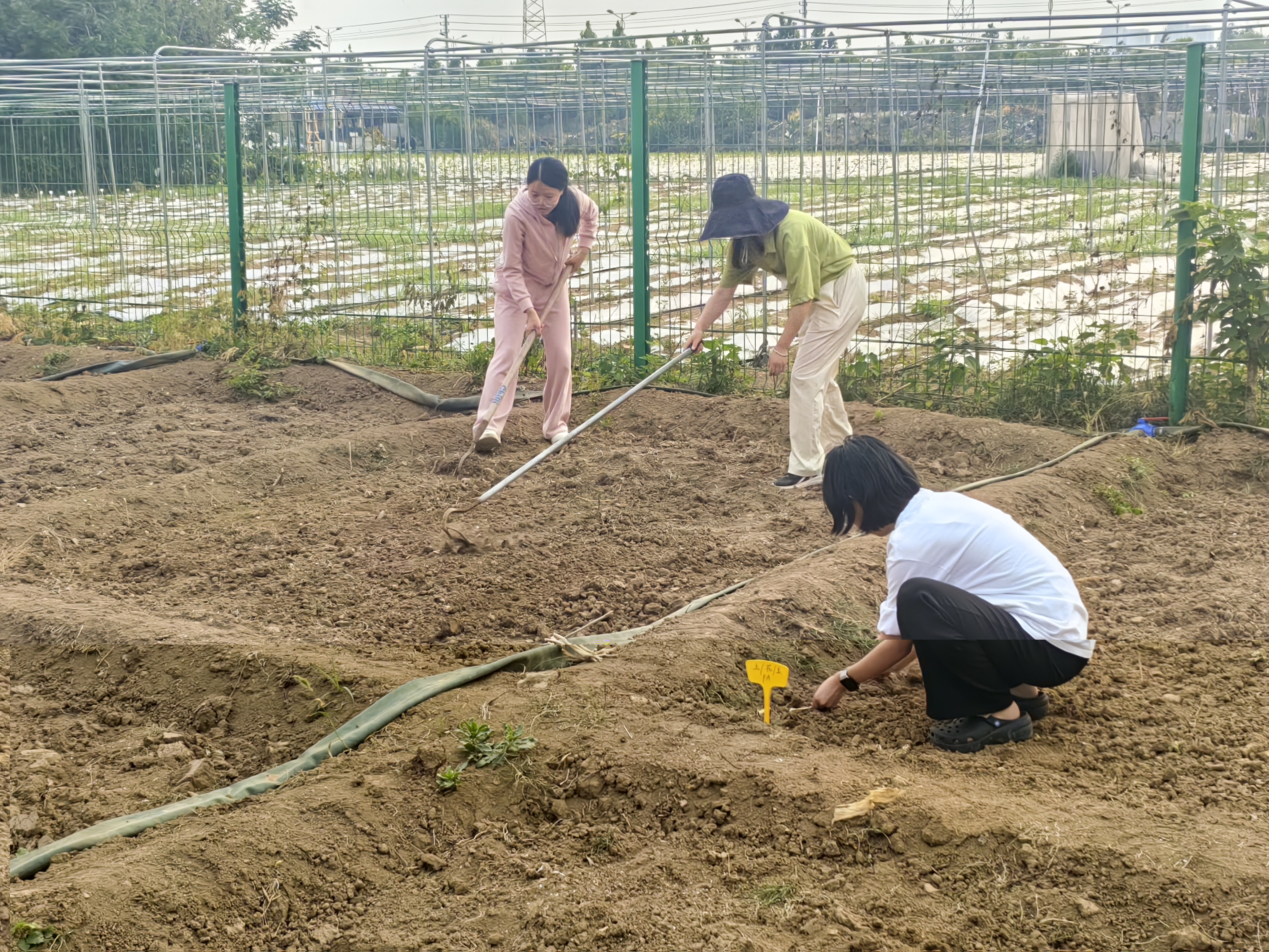 王丽代表学院与智慧生态园林开发中心负责人丁锦平共同签署beat365中文官方网站劳动教育实践基地协议书并向丁锦平授牌“beat365中文官方网站大学生劳动教育基地”。随后,丁锦平带领大家参观了并向大家讲解了中心内各类植物的种植技术、培育重点、观赏方法与艺术价值等养护技术要点。最后,学生们在田地里开展了种植培育活动。