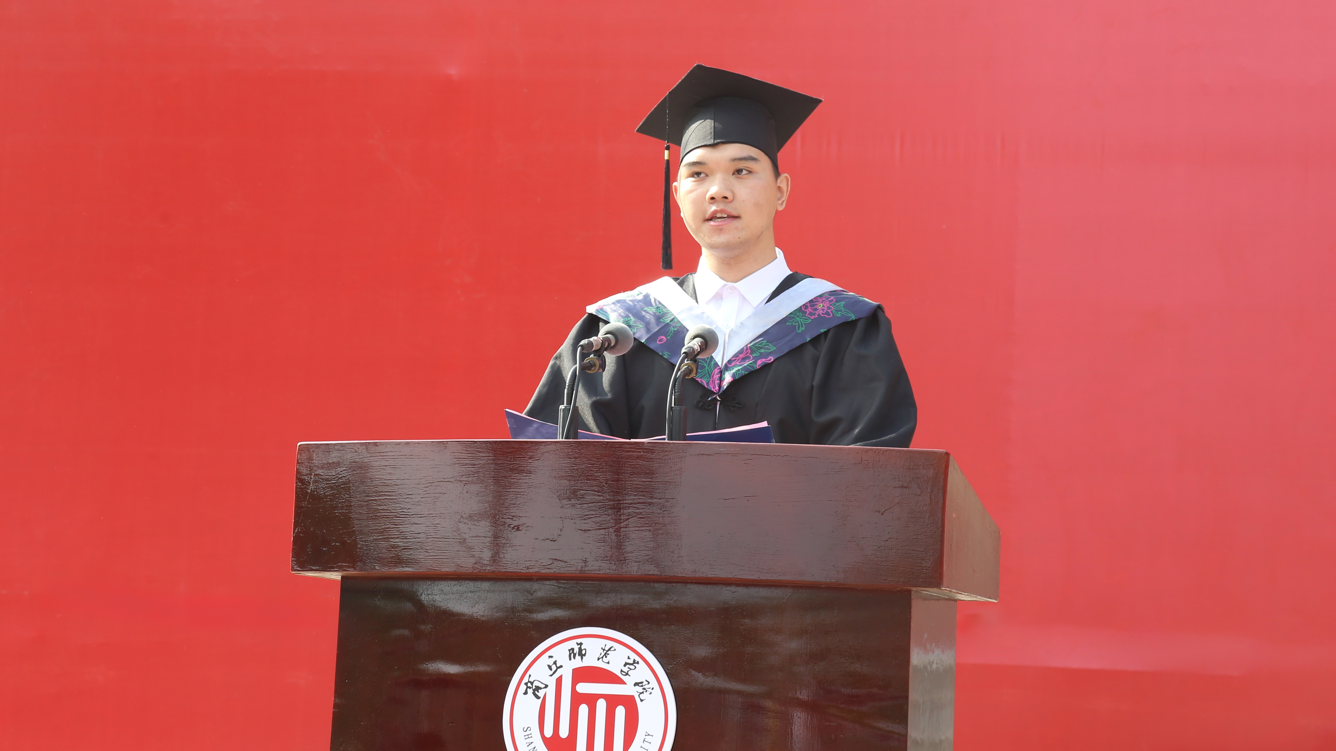 毕业典礼上,校级领导为beat365官网优秀应届毕业生刘杨颁发了荣誉证书,表彰其在校期间的优异表现。时家宝同学作为毕业生学生代表发言。他回顾大学四年的奋斗历程,感恩教师的悉心教导和学校的辛勤培育。他立志牢记习近平总书记的嘱托,以青春之我、奋斗之我,为祖国建设添砖加瓦。
