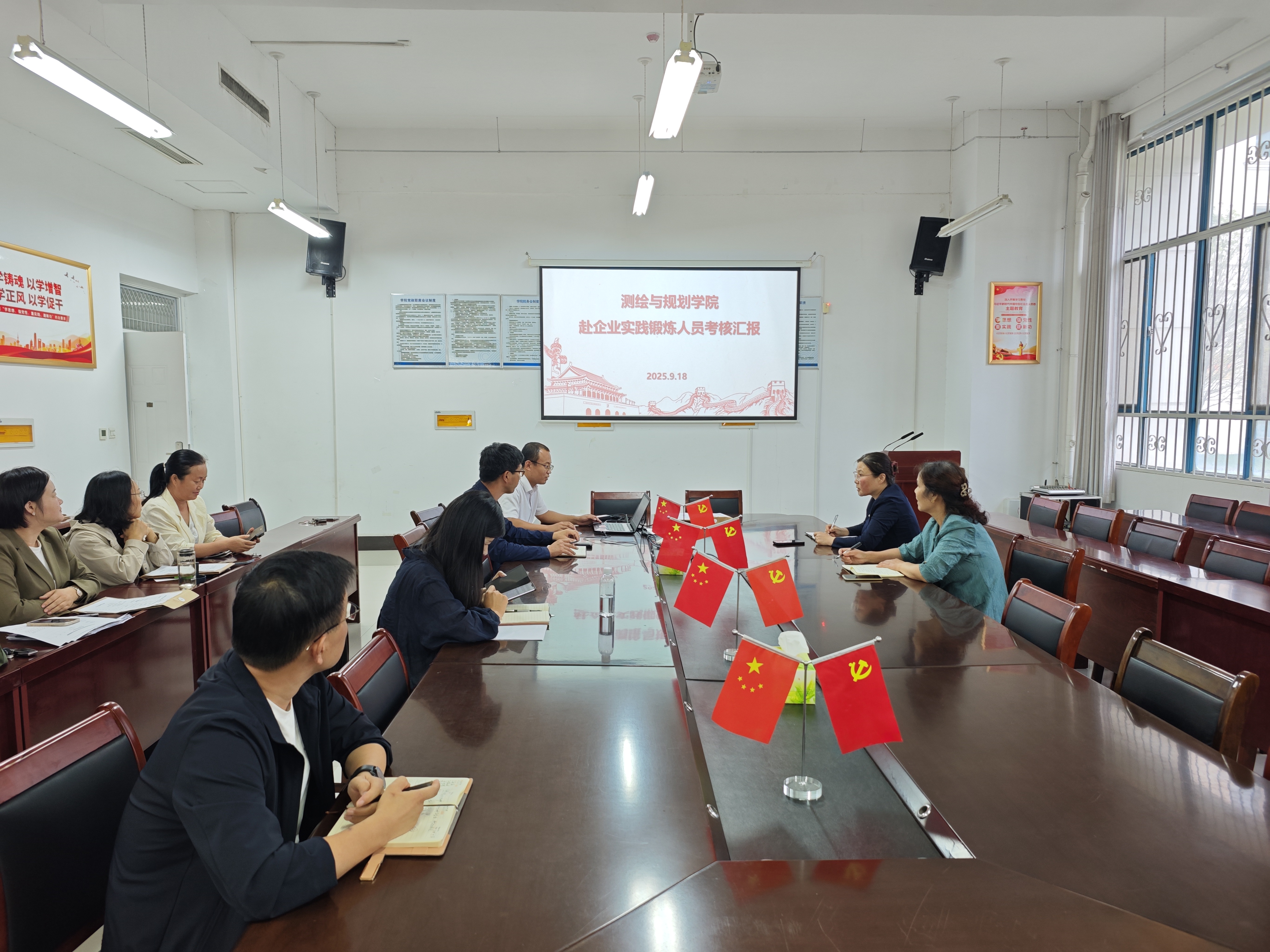 2025年9月18日,beat365中文官方网站在三商楼134会议室举行了赴企事业单位实践锻炼教师终期考核会,由领导班子成员及系主任组成考核组,院长贺振任考核组组长。