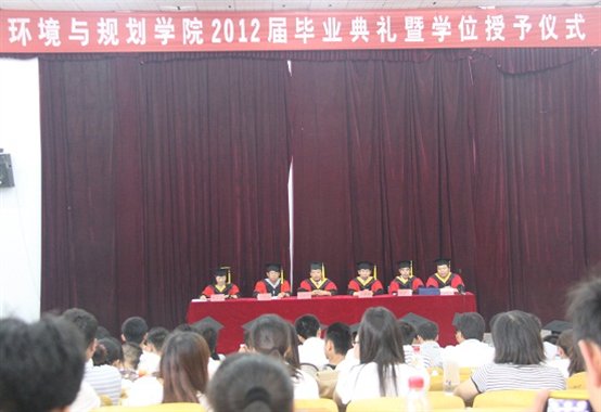 6月5日上午,环境与规划学院2012届毕业典礼暨学位授予仪式在文化路校区大学生文工团举行。环境与规划学院全体领导班子、全体教师和143名毕业生参加了仪式。仪式由副院长余方镇主持。