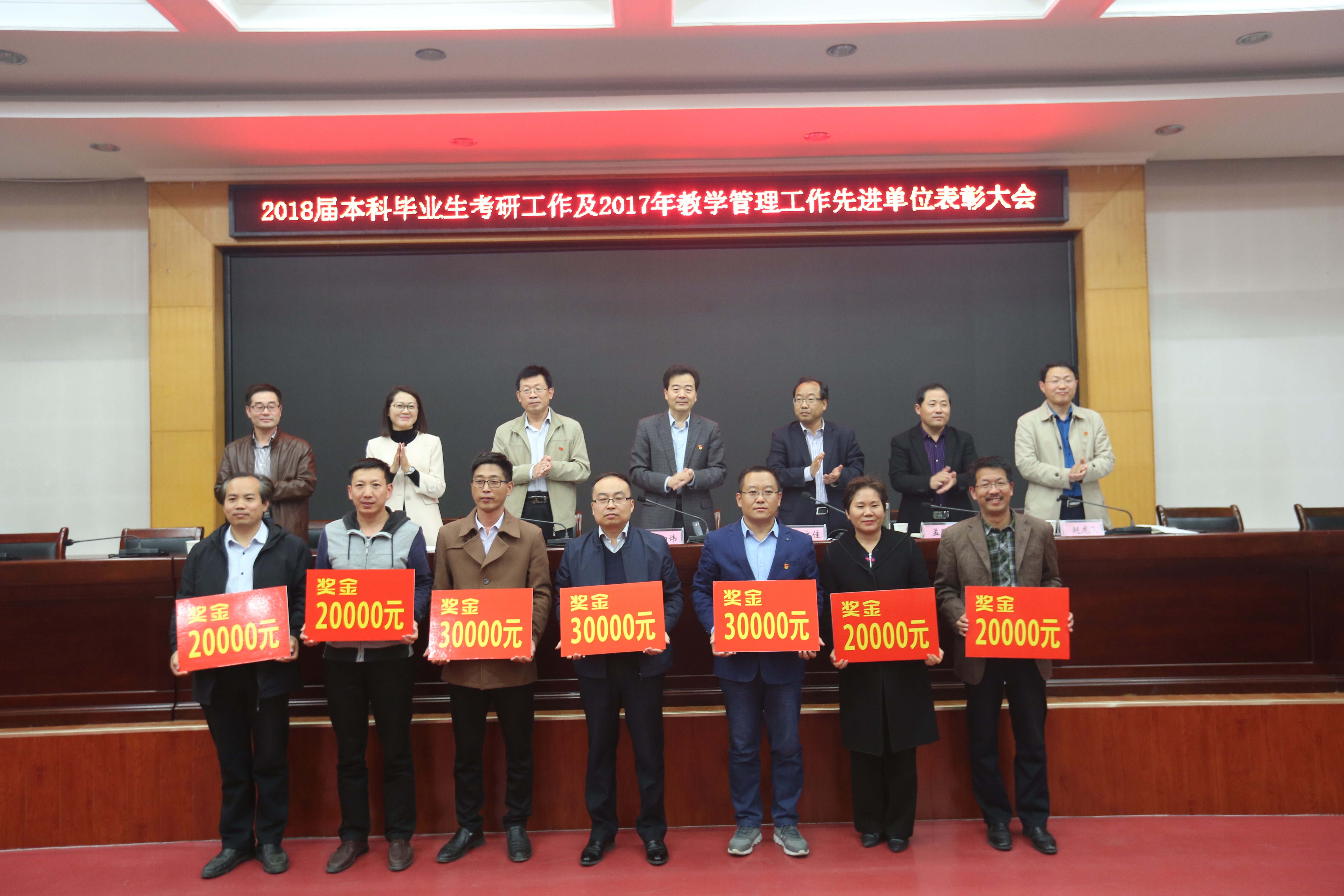 10月26日下午,beat365官网在平原路校区召开了2018届本科考研工作表彰大会。副校长陈向炜、郭文佳出席会议,教务处、学生处、招生与就业处、校团委、教学评价与教师发展中心等部门负责人及各学院院长、副书记、教学副院长、教学办主任、考研辅导教师代表、大四(2019届毕业生)辅导员、大四学生代表参加了此次会议。会议由郭文佳副校长主持。会上, 招生与就业处处长庞永祥宣读了《beat365中文官方网站关于2018年考研工作先进单位表彰的决定》。副校长陈向炜、郭文佳及与会领导向获奖单位颁发了奖金和奖牌。