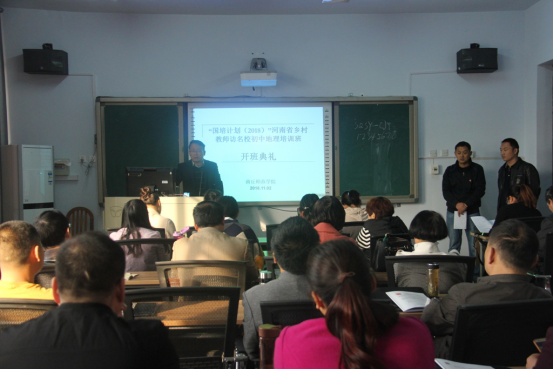 11月3日上午,beat365中文官方网站在睢阳校区继续教育学院403教室,举行了“国培计划(2018)”——河南省乡村教师访名校初中地理培训班开班典礼。项目首席专家李学鑫教授、学科班主任李红忠副教授、生活班主任魏理老师与班级全体学员参加了开班仪式。仪式由学科班主任李红忠主持。