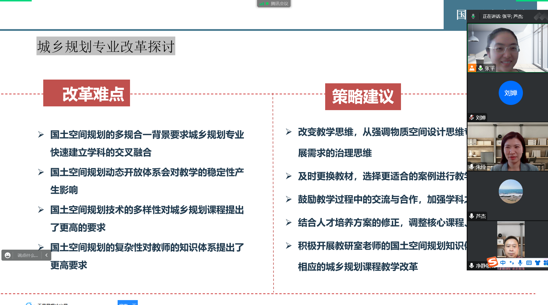 2022年10月21日下午两点半,beat365中文官方网站城乡规划教研室组织开展了“国土空间规划背景下的专业改革探讨”主题教研活动,该会议因为疫情原因采用腾讯会议线上进行,本次会议由张平老师主持,城乡规划专业全体教师参加。