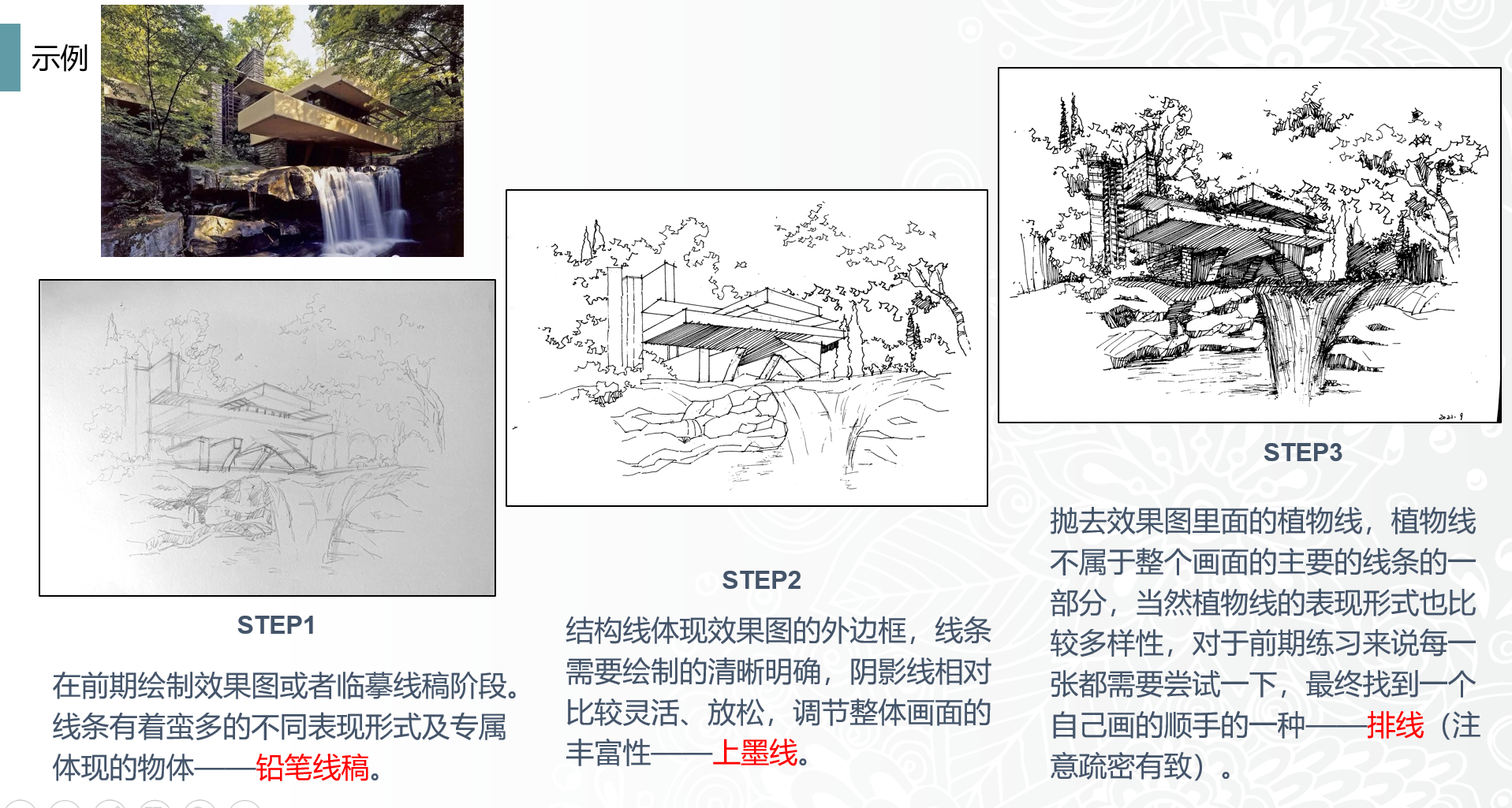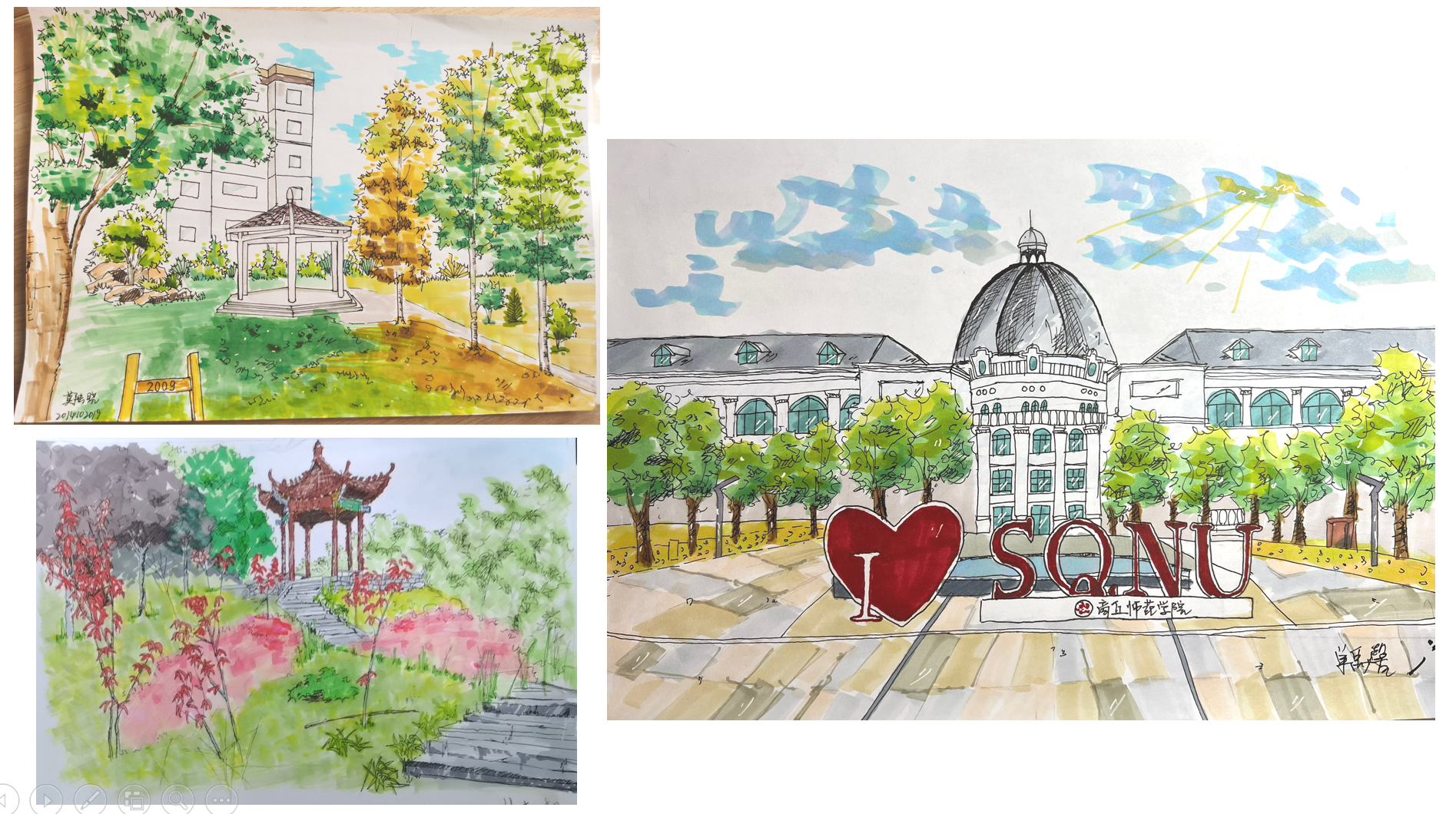 首先,姜书纳老师以城乡规划专业2021级《钢笔画》课程为例,从教学背景、教学设计、教学过程等方面进行分享。并以beat365中文官方网站校园风景写生为例,从“取景”、“构图”、“明暗关系处理”等分享了部分学生的钢笔画作品。从钢笔画写生“取”与“舍”角度展示了城规21部分学生的钢笔画作品,总结出在钢笔画写生过程中懂得取舍的重要性。同时分享自己钢笔画临摹作品,通过对比分析法让学生掌握在临摹中透视和布局的重要意义。