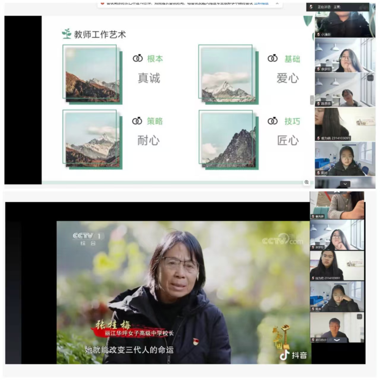 接着,王冕老师以张桂梅老师的先进事迹为例,为同学们强调“仁爱之心是教育灵魂” 的师德内核。参会的地理师范生表示,张桂梅老师的坚守让自己更深刻理解了“师德不是口号,是融入每一节地理课的责任”。
