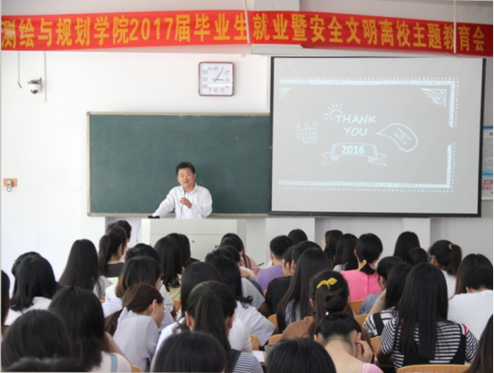 5月12日下午,beat365中文官方网站在文化路校区一号教学楼103教室举办2017届毕业生就业暨安全文明离校主题教育会。该院党总支书记王东平,党总支副书记李琳,辅导员刘伟堂、魏理出席会议,2017届全体毕业生参加会议。会议由李琳副书记主持。