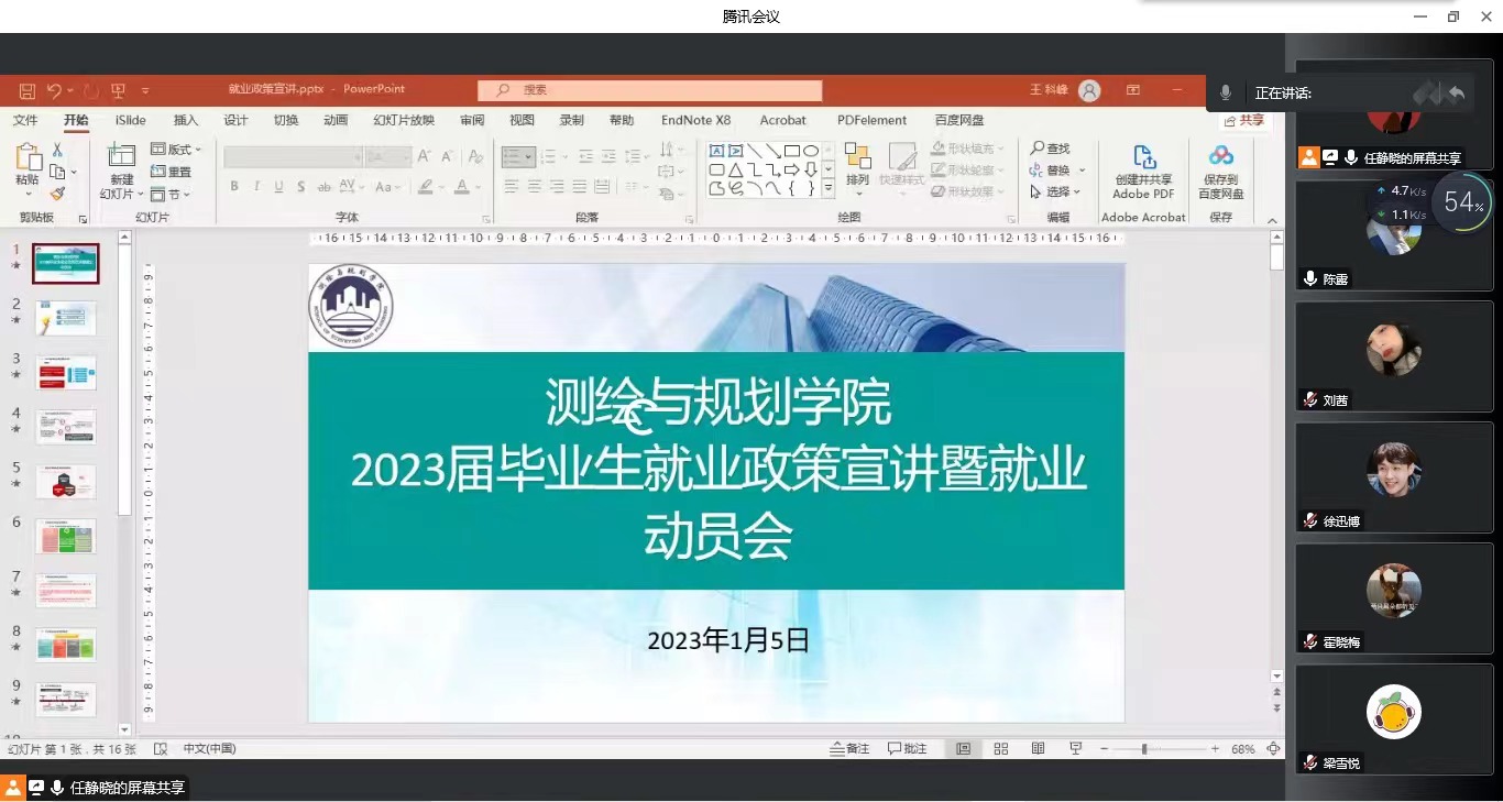 为帮助beat365中文官方网站2023届毕业生进一步了解就业形势、熟悉就业政策,明确未来发展方向,实现更充分和更高质量就业。1月5日,beat365中文官方网站于线上开展2023届毕业生就业政策宣讲暨就业动员会,本次会议由2023届毕业生辅导员任静晓主讲,beat365中文官方网站2023届毕业生参会。