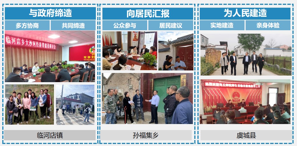 辛勤耕耘结硕果,规划设计绘城乡。目前,城乡规划专业在乡村规划、城市更新等城乡人居环境建设相关领域的社会服务形成一定影响力。一是做美乡村设计,提高农业农村领域创意设计水平,赋能农村产业发展和美丽乡村建设;二是做优城市设计,以创新设计打造生产、生活、生态相互融合的城市空间;三是做好古城更新规划,聚焦聚力古城复兴,坚持把古城文化作为设计的“根”和“魂”,全力打造“一城阅尽五千年”的文旅品牌。先后与地方企事业单位合作完成了《商丘市临河店镇田园综合体规划》、《商丘市梁园区黄河故道绿道规划》、《鹿邑县、谷熟镇、永城市部分村庄人居环境整治》、《鹿邑县城郊乡村旅游规划》、《自然资源和规划局梁园分局“国土空间规划”主题培训》等规划设计和培训类项目,为推动区域城乡高质量发展贡献专业力量。
