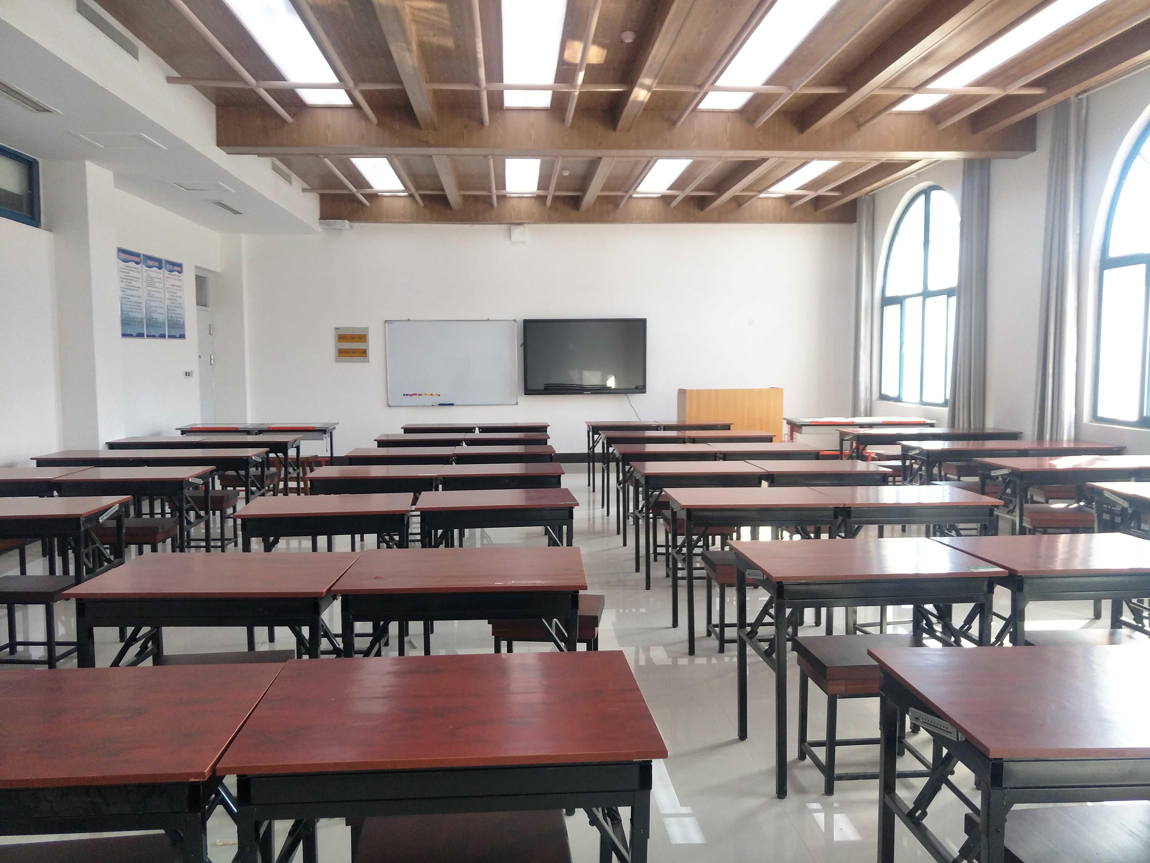 专业制图室场地面积120平方米,共有制图桌50张,拷贝桌4张,并配备有教学一体机和桌面实物展台。课堂上可利用教学一体机进行多媒体教学,也可利用桌面实物展台满足边手绘边授课的需求,向学生展示具体绘画步骤。承担着城乡规划专业的课程教学,课程设计,毕业设计等教学工作,以及专业实践设计工作,目前承接的主要课程有:《建筑初步》、《建筑设计及原理》、《快题设计》、《村镇规划》、《城市道路与交通规划》、《风景名胜区规划》等。